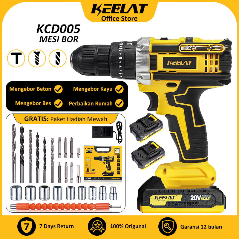 KEELAT-KCD005 10mm 20V Mesin Bor 2 MT Baterai Cordless Impact Drill Screwdriver Multifunction bor listrik