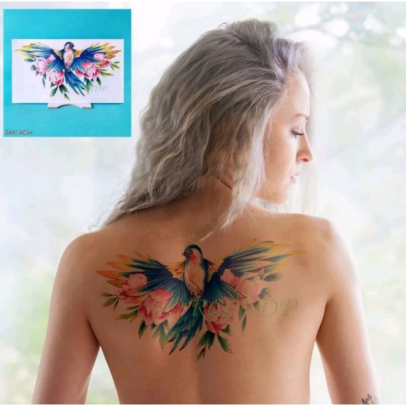 Tato Temporer Tahan Lama 2-7 Harian Anti Air - Tato Temporer Punggung Dada Pinggang Perut Burung Hantu Panjang Palsu Say