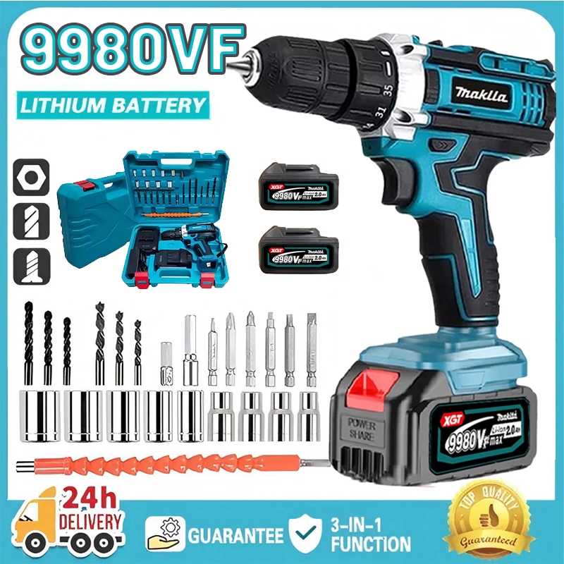 【35GIGI】MAKlTA 9980VF Mesin Bor 2 Baterai Bor Impact listrik Bor Cordless 3 Mode-Bor Impact Obeng 10mm Bor Tembok Besi