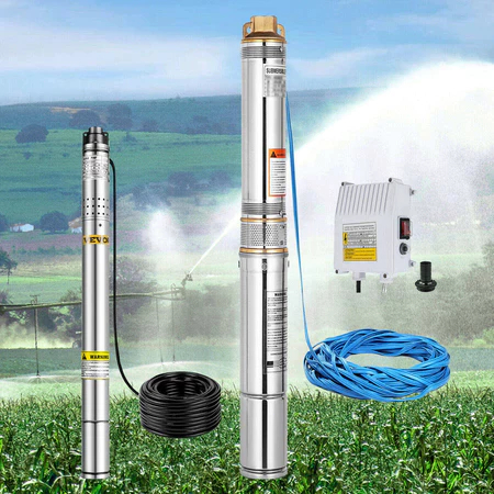 REAIM Pompa Satelit 1/2 inch Pompa Air 0.75HP 550W Celup Sumur Kabel 25 Stainless Steel Submersible Pump