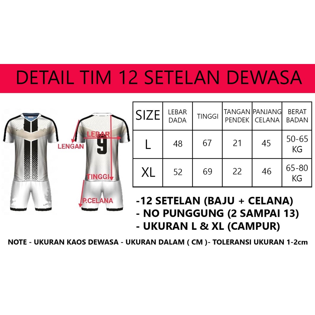Kostum Bola Dewasa Jersey Tim 12 Setel Futsal Voli SepakBola Dewasa Motif Keren Terbaru New Premium Bagus 1 Set Paket Murah
