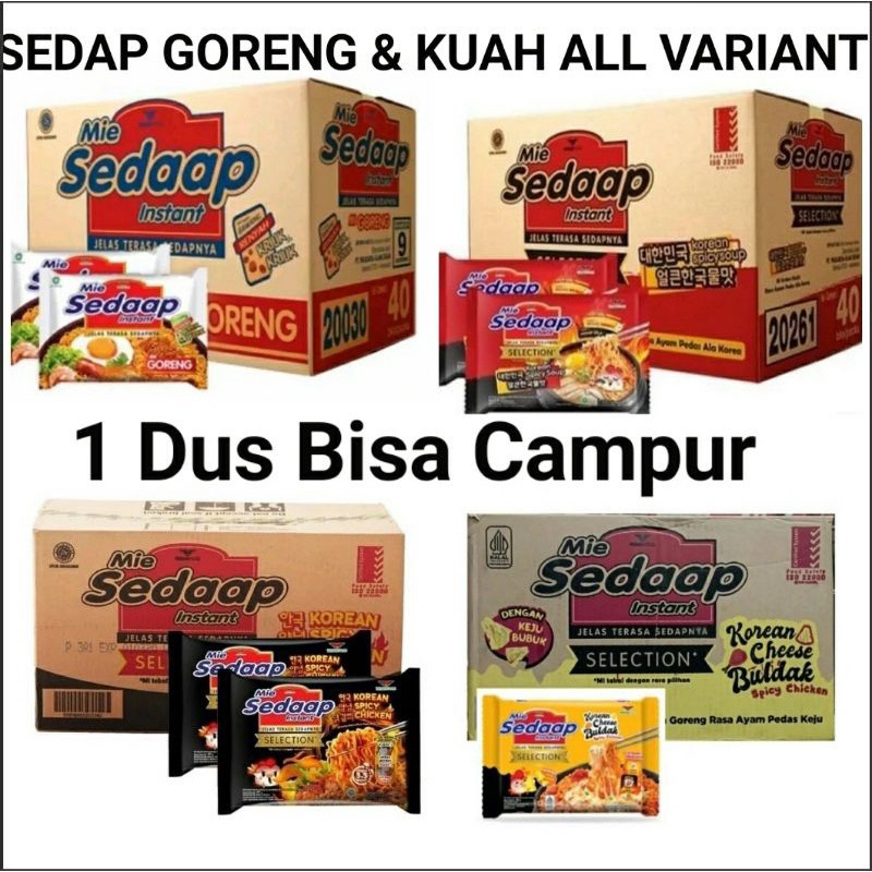 SEDAP 20gor+20soto, SEDAP 20SOTO+20BWANG, SEDAP BAWANG 1 DUS, SEDAP GORENG 1 DUS, SEDAP KOREAN SPICY, SEDAP SOTO 1 DUS, SEDAP 20gor+20bawang