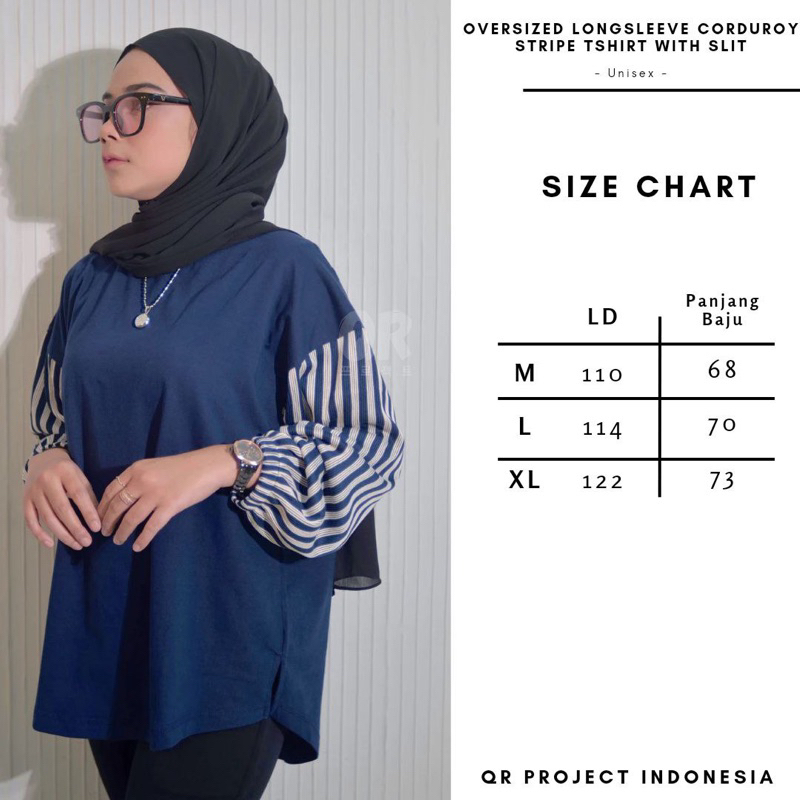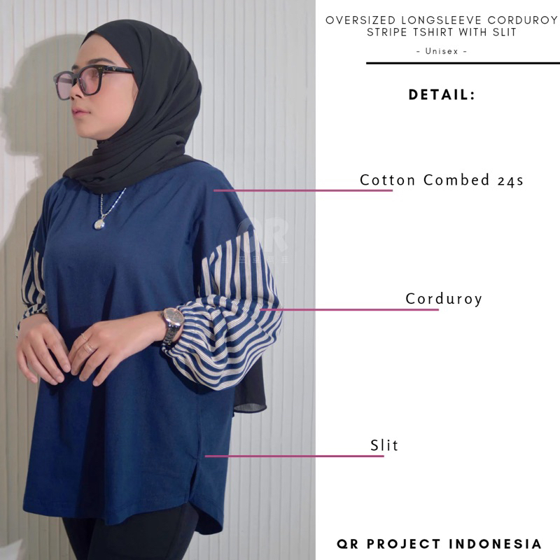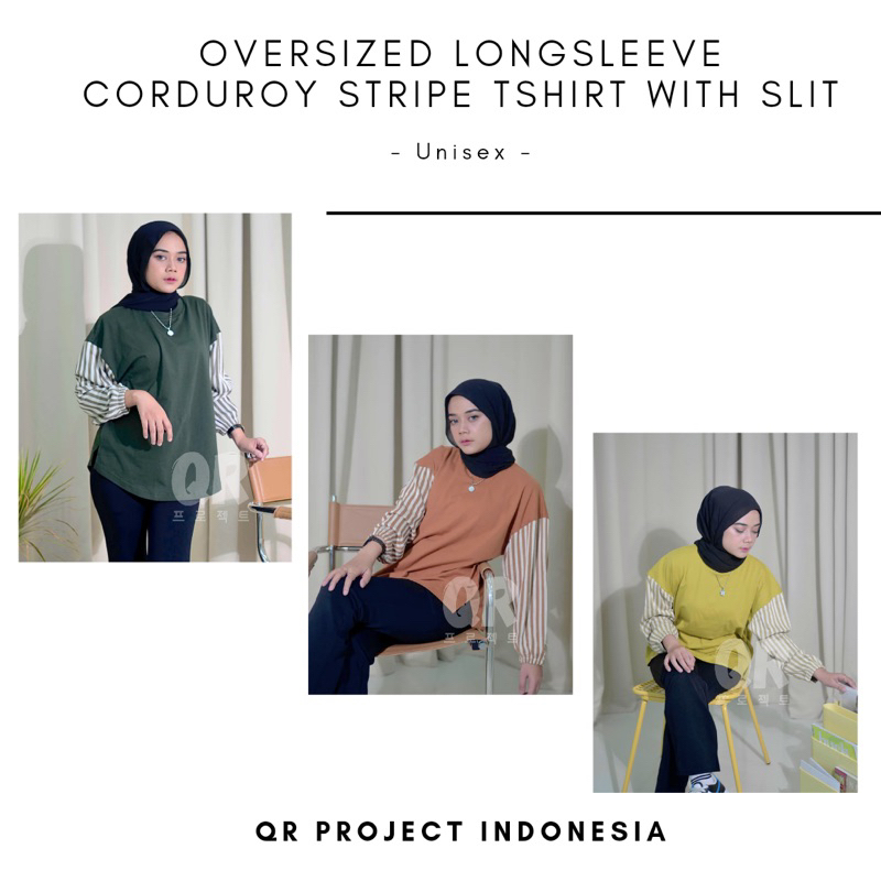 Kaos Oversize Wanita Lengan Panjang Salur Stripe Cotton Corduroy With Slit Murah Gratis Ongkir Garansi Pengiriman