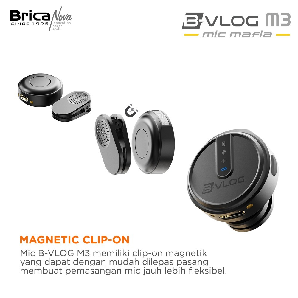 Brica B-VLOG M3 Dual Wireless Microphone - Clip On Mic Vlog - Dengan Indikator Charging Case