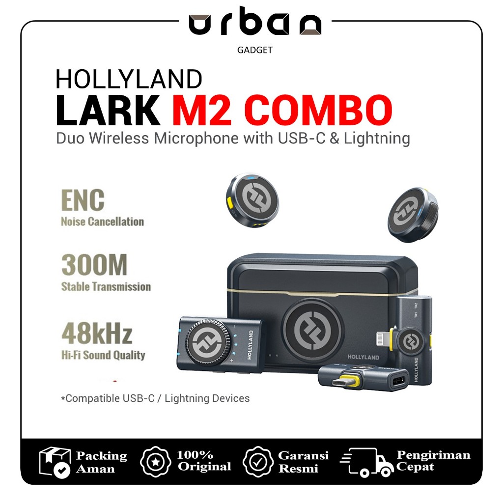 Hollyland Lark M2 Dual Wireless Lavalier Microphone Noice Cancelling - Resmi