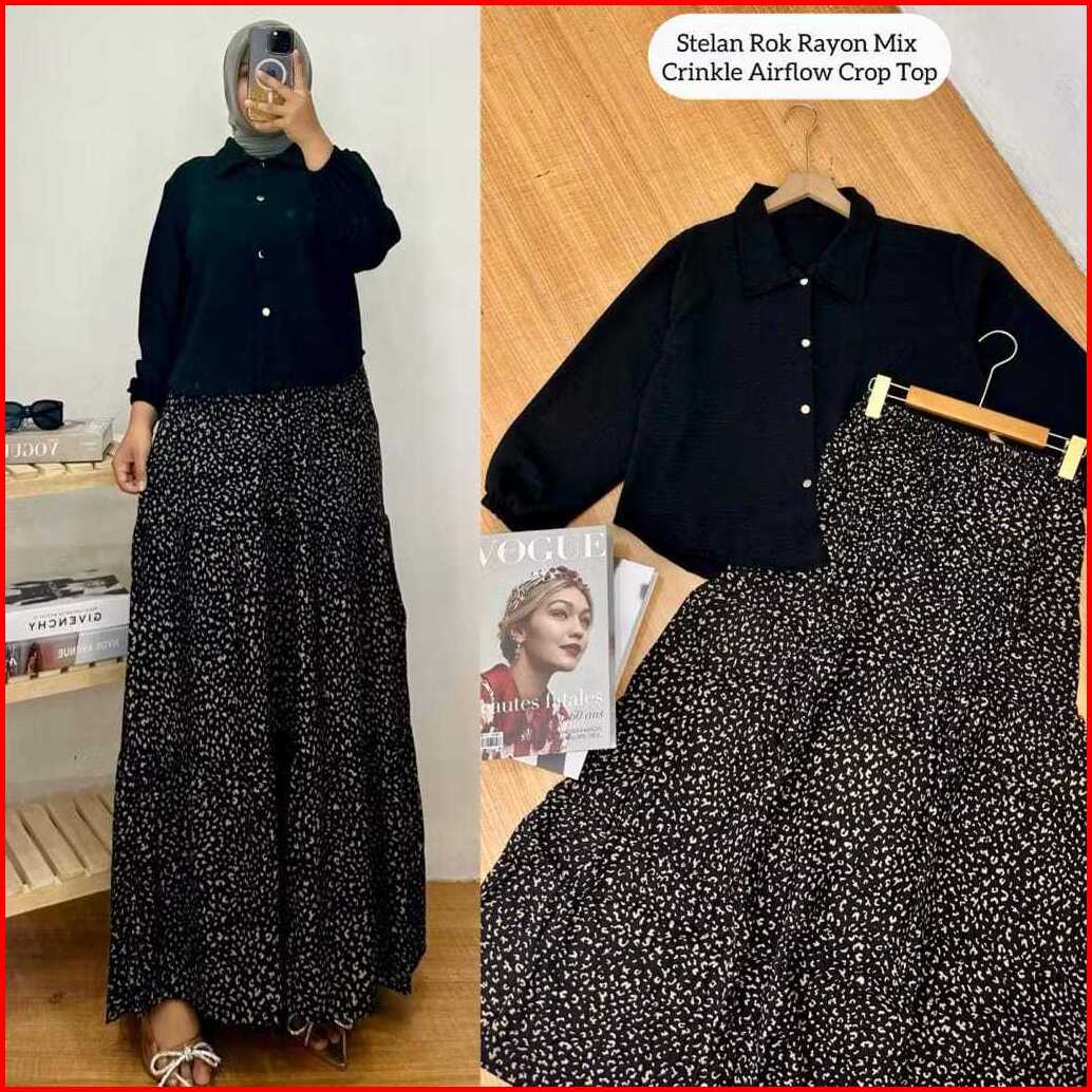 Set Rok Setelan Wanita Kemeja Crinkle Rok Rayon One Set