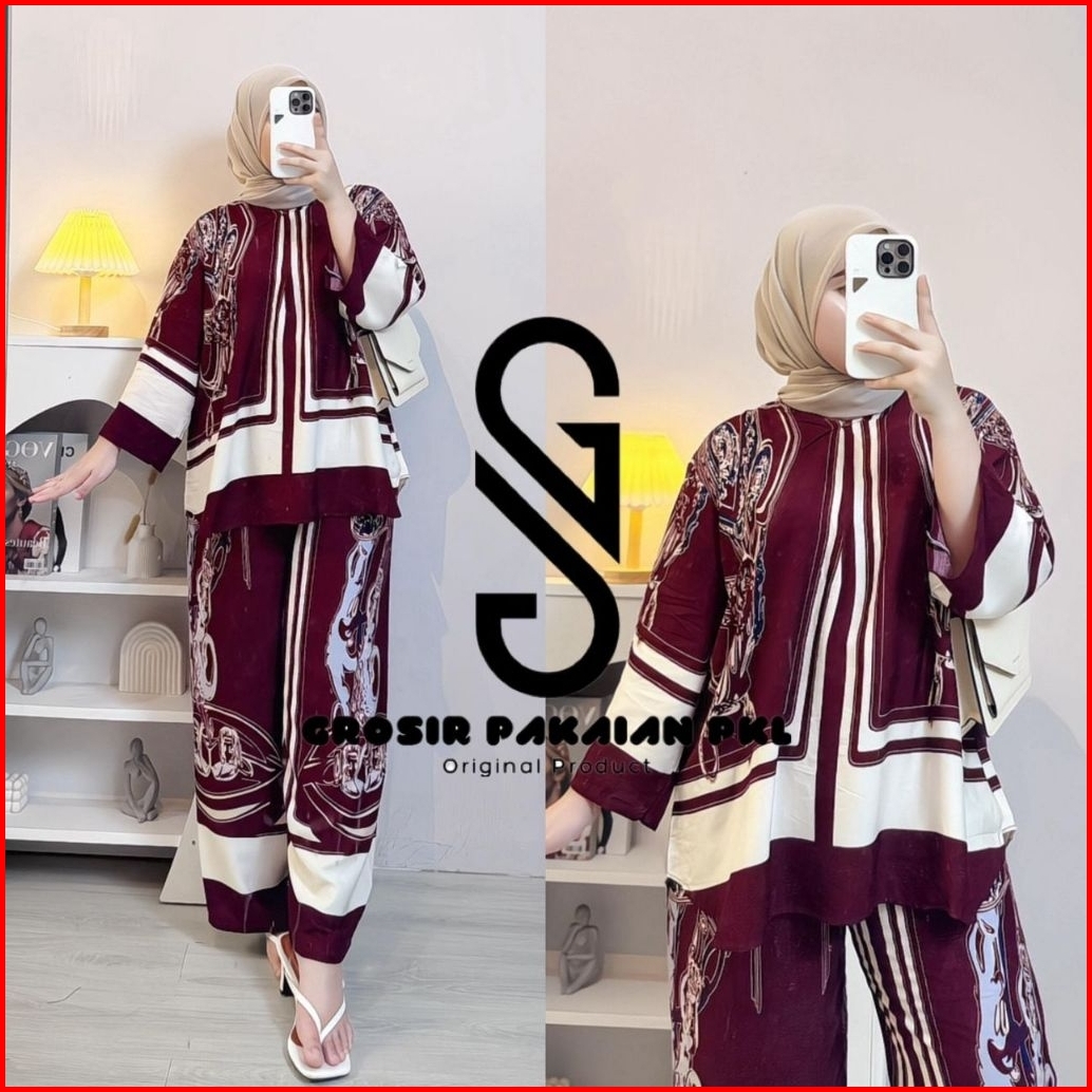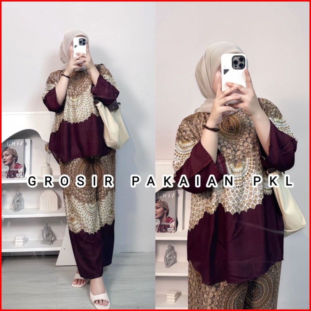 Setelan Celana Motif Terbaru Oneset Celana Rayon Premium Busui Friendly Resleting Depan