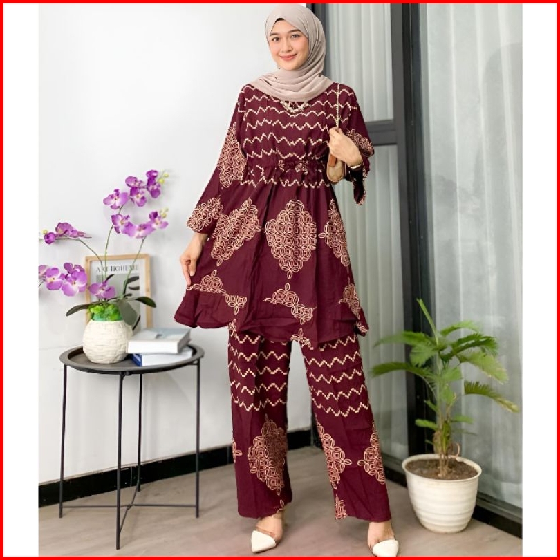 Setelan Wanita Tiedye One Set Wanita Kekinian Rayon Ld 120 Motif Batik Busui Lengan Panjang Tali Serut