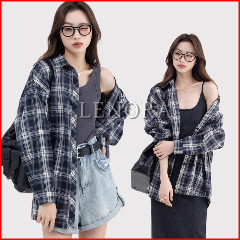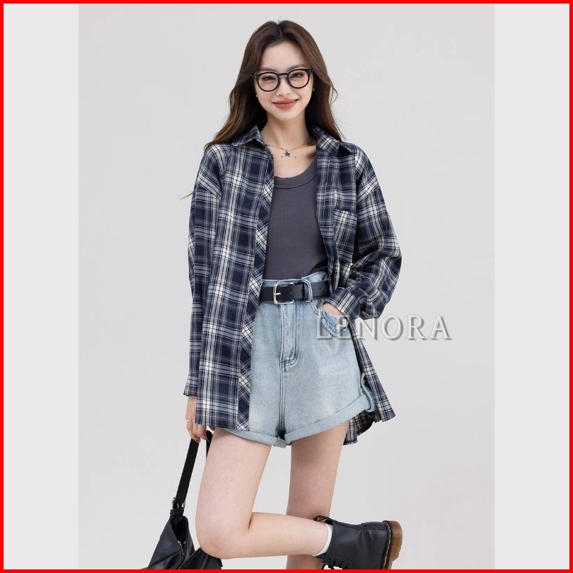 Kemeja Kotak-kotak Lengan Panjang Retro Amerika Jaket Atasan Kasual Longgar