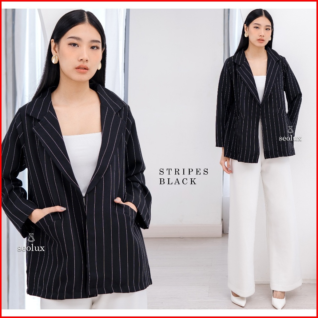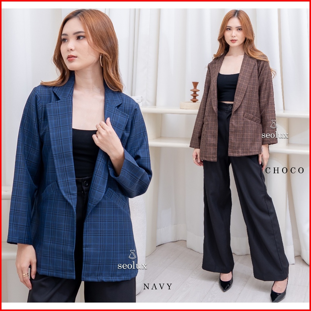 Seola - Cd85 - Ava Blazer Outer Basic Linen Atasan Kerja Motif Kotak Bigsize Jumbo Xl Xxl