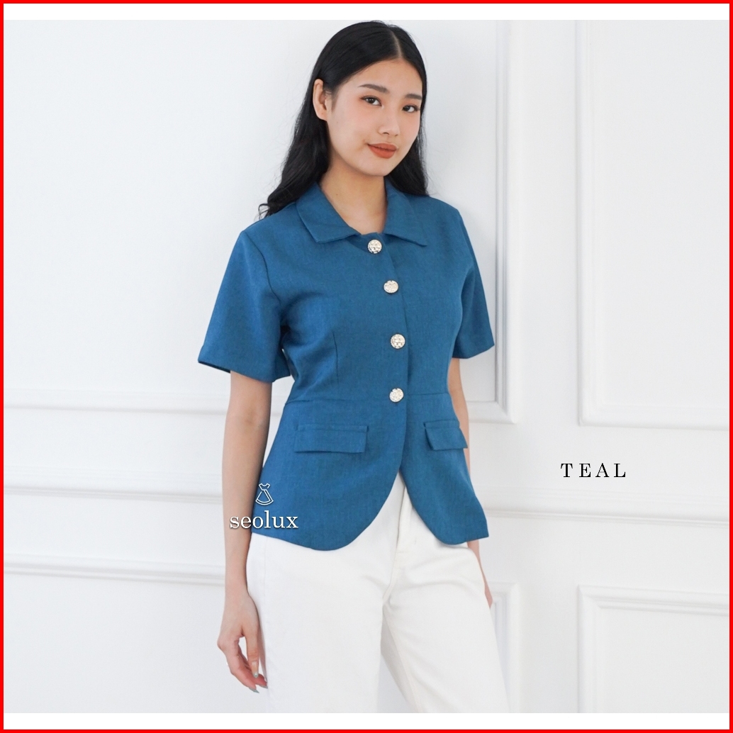Seola - Tp642 - Tiffany Top Atasan Kemeja Wanita Semiwool Tweed Premium Atasan Kerja Kantoran Big Size Jumbo Xl Xxl