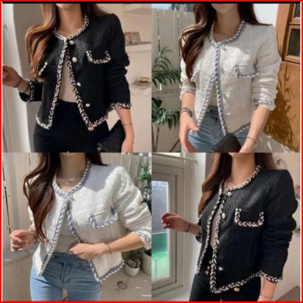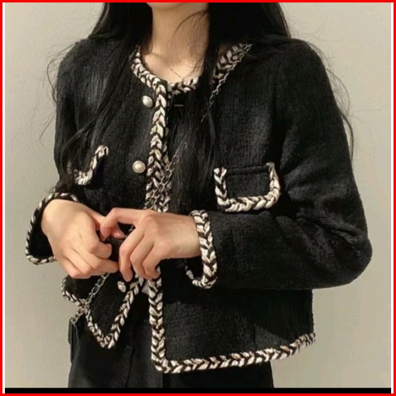 Blazer Tweed Wanita Kotak-kotak Fashion Terkini