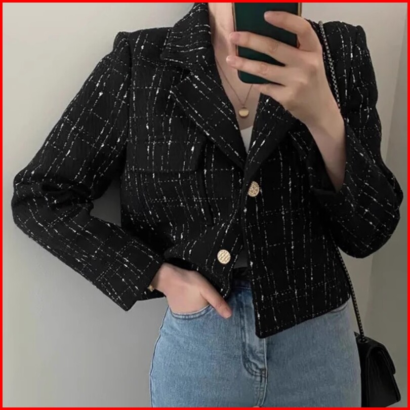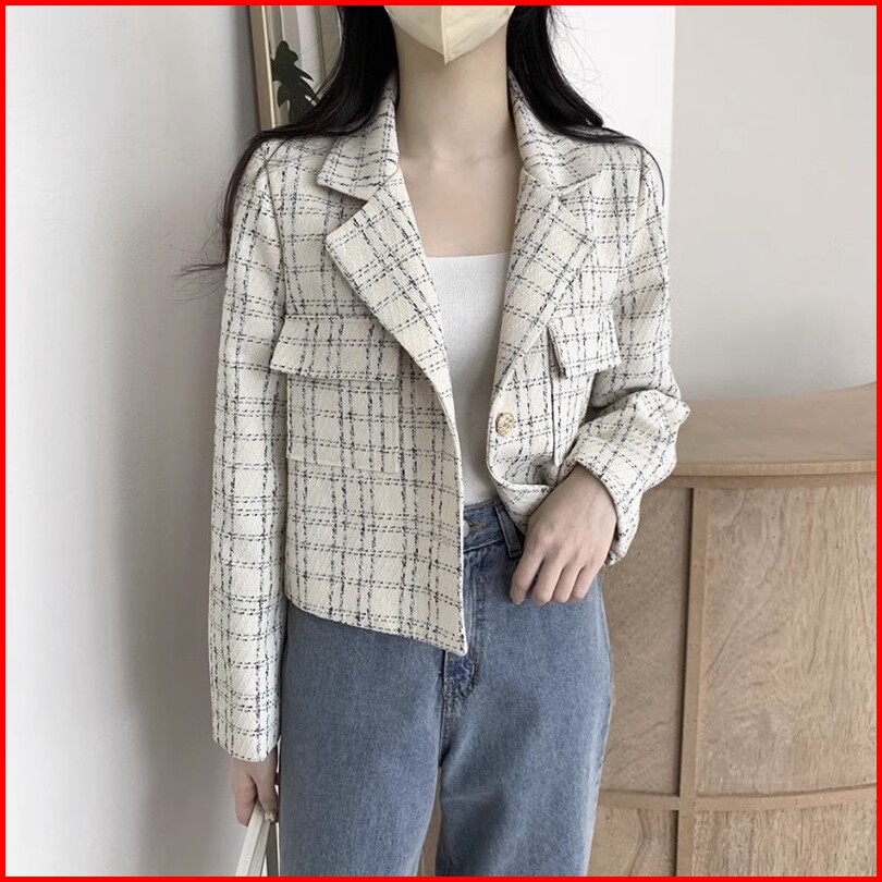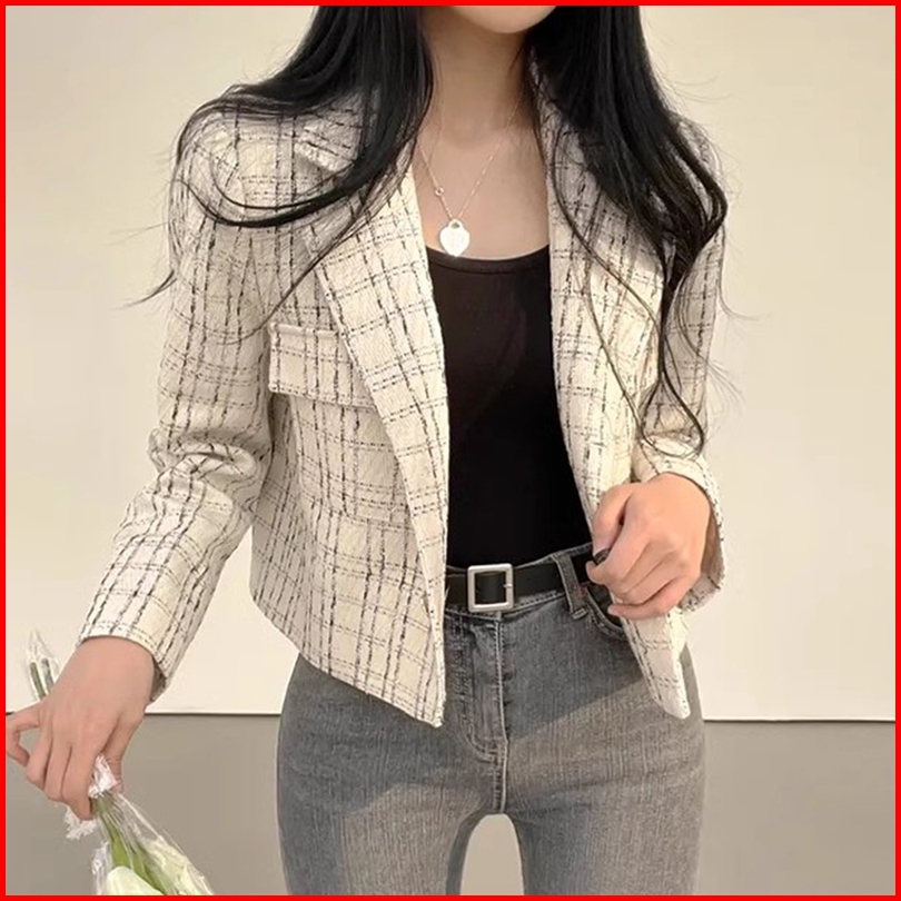 Jacket Wanita Terbaru Vintage Lengan Panjang Kotak-kotak Kardigan Crop Korean Style Kekinian Import Baju Atasan Wanita P