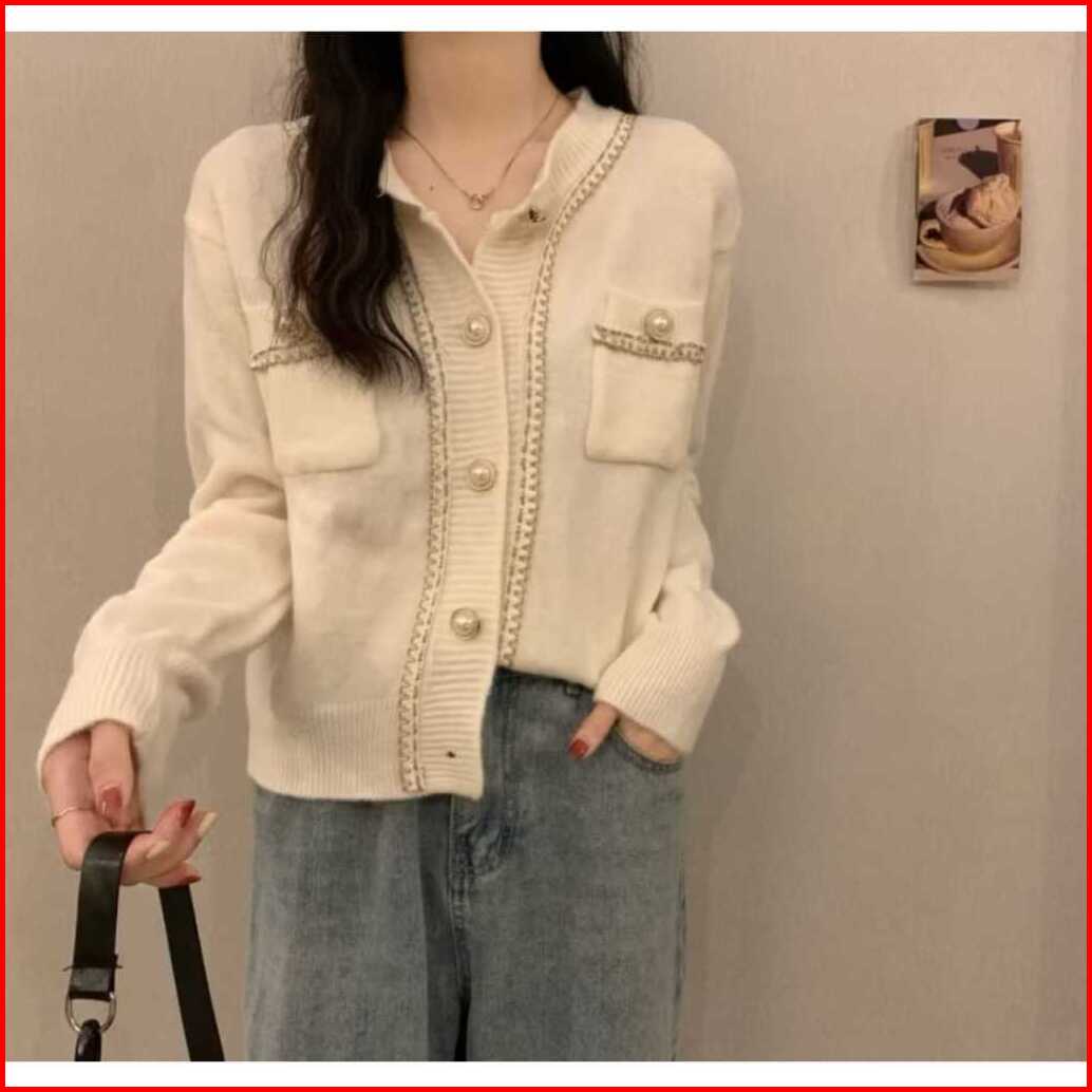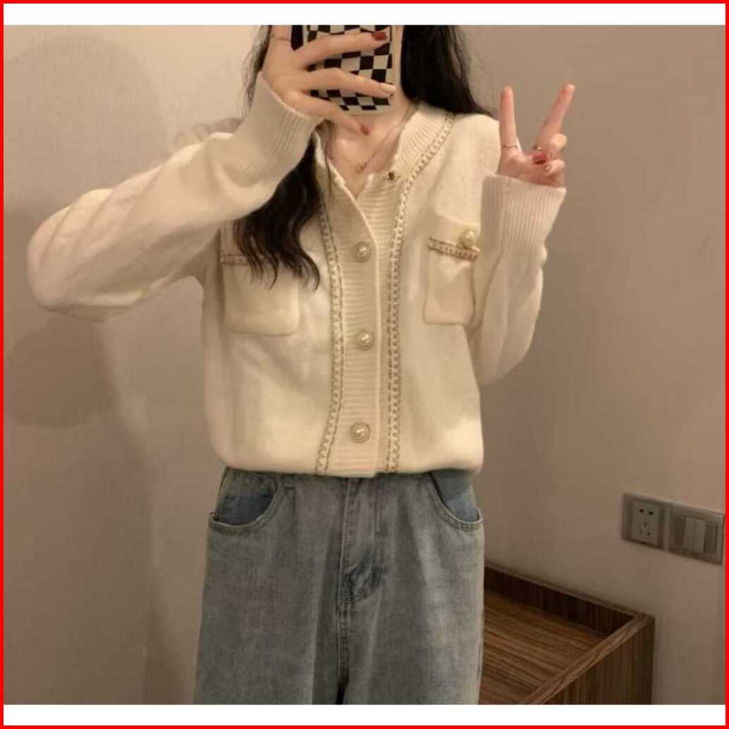 Gudang - Cardigan Wol Rajut Korean Style List Full Kancing Mutiara Kekinian