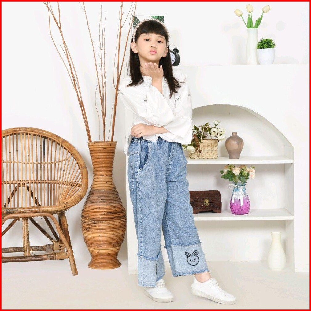 Sinarbarukids Setelan Anak Perempuan Kienzy Atasan Katun Celana Jeans Bordir 1 - 12 Tahun