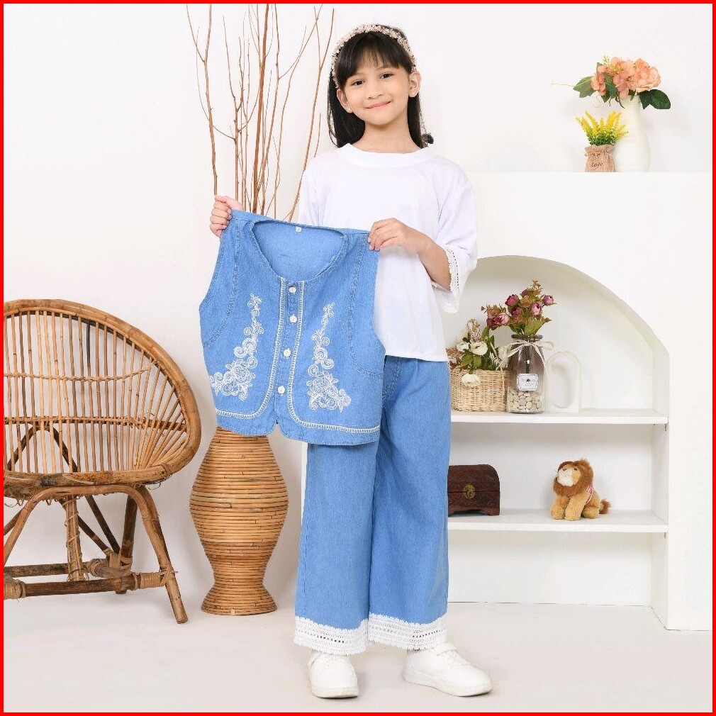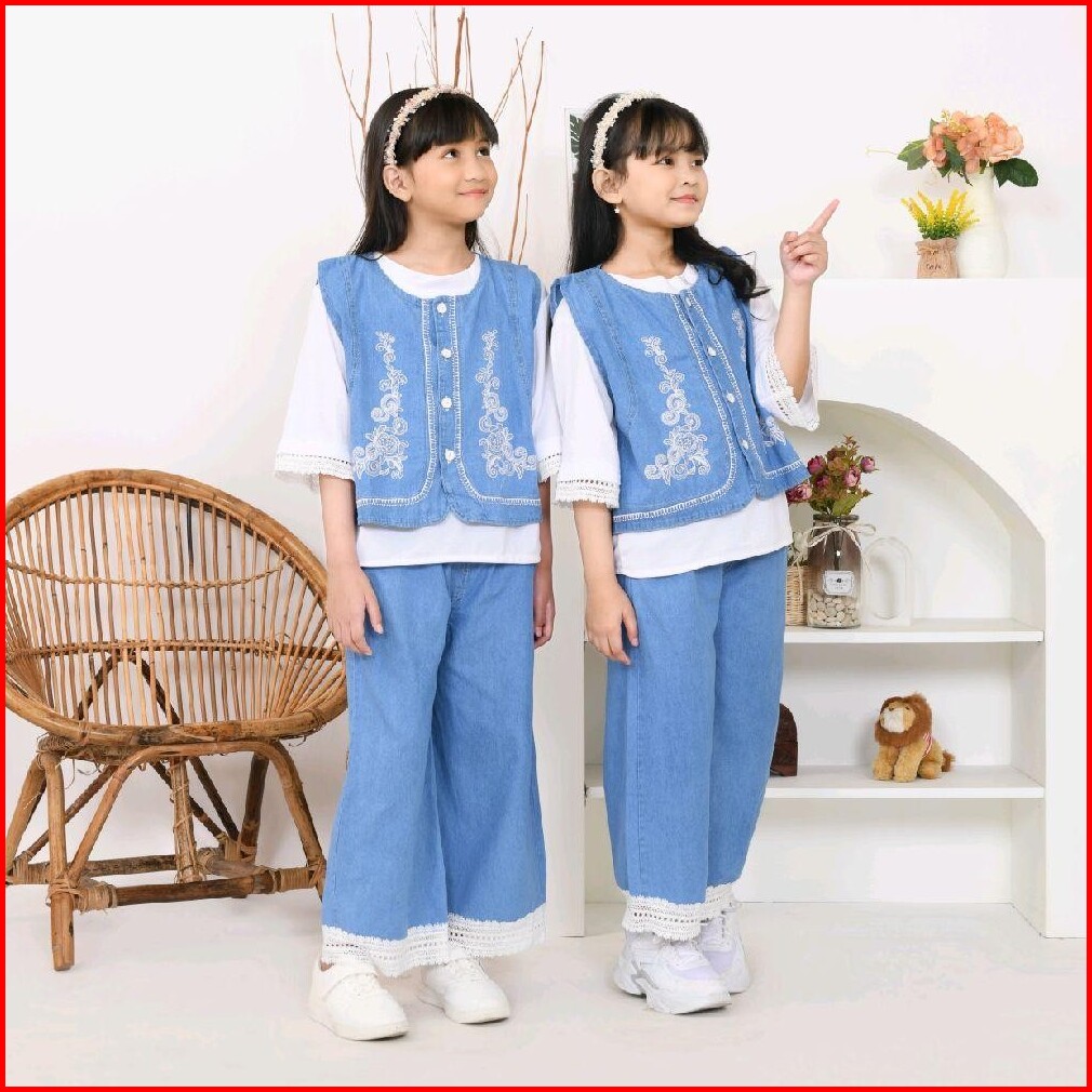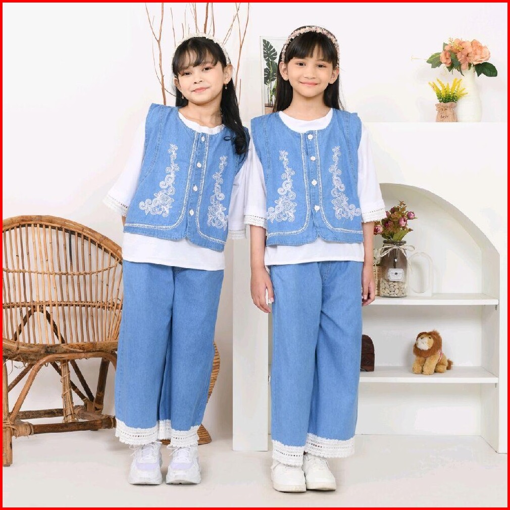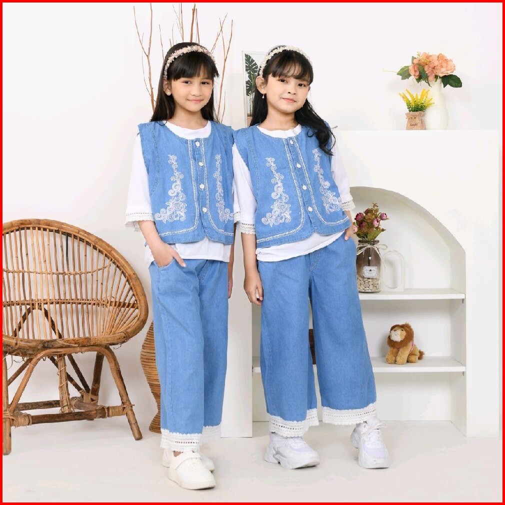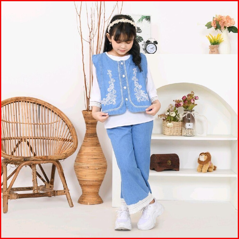 Sinarbarukids Set Jeans Fiona 3 In 1 Vest Bordir 1 - 12 Tahun Fashion Parsel