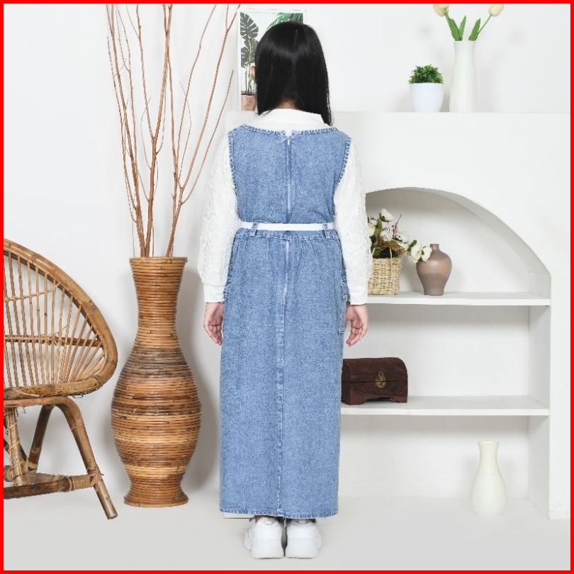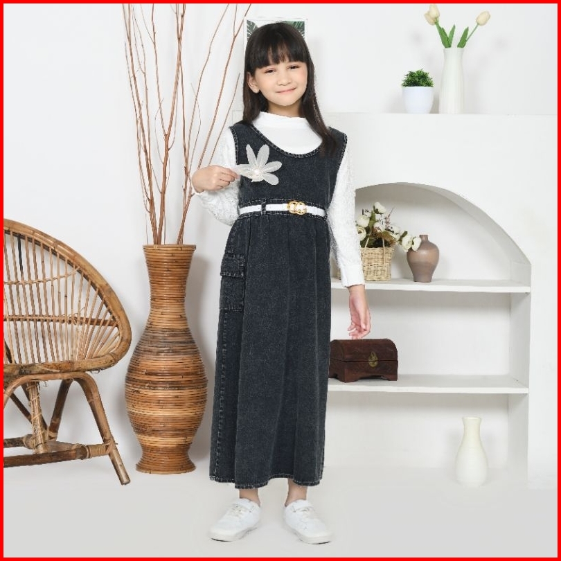 Sinarbarukids Dress Overall Jeans Anak Perempuan Lavina Free Belt 3 - 12 Tahun