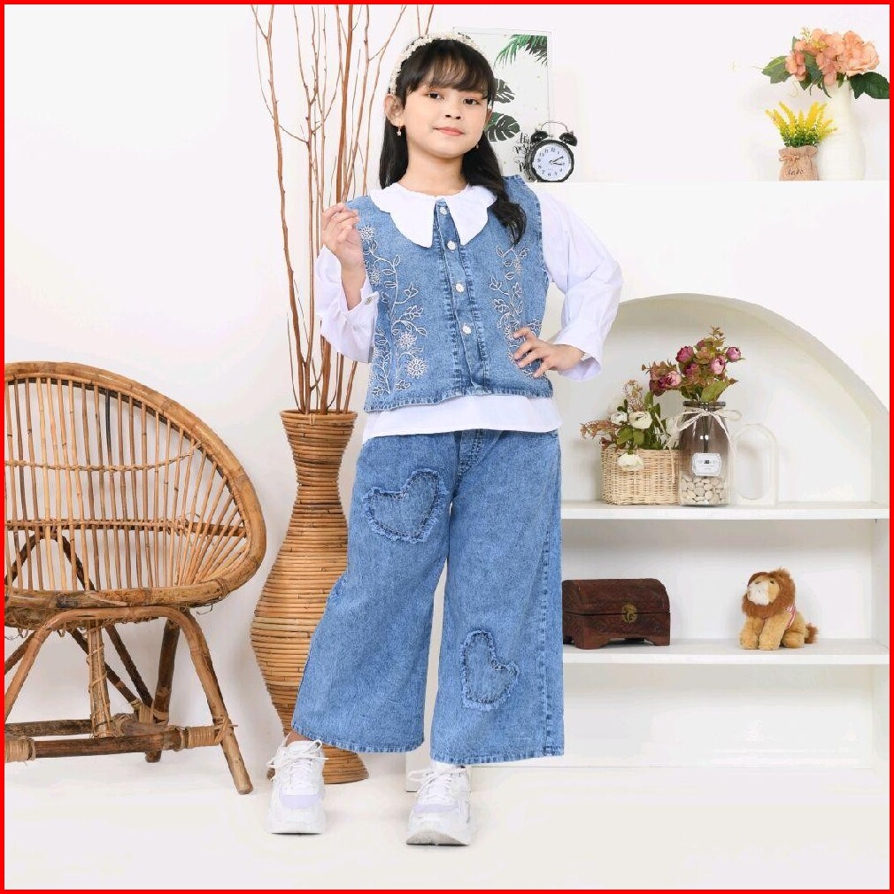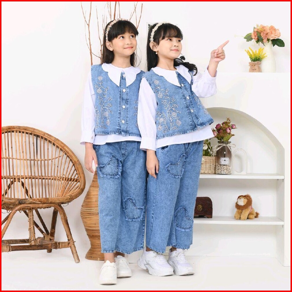 Sinarbarukids Set Jeans Anak Perempuan 3 In 1 Aurelia Vest Bordir 1 - 12 Tahun Fashion Parsel