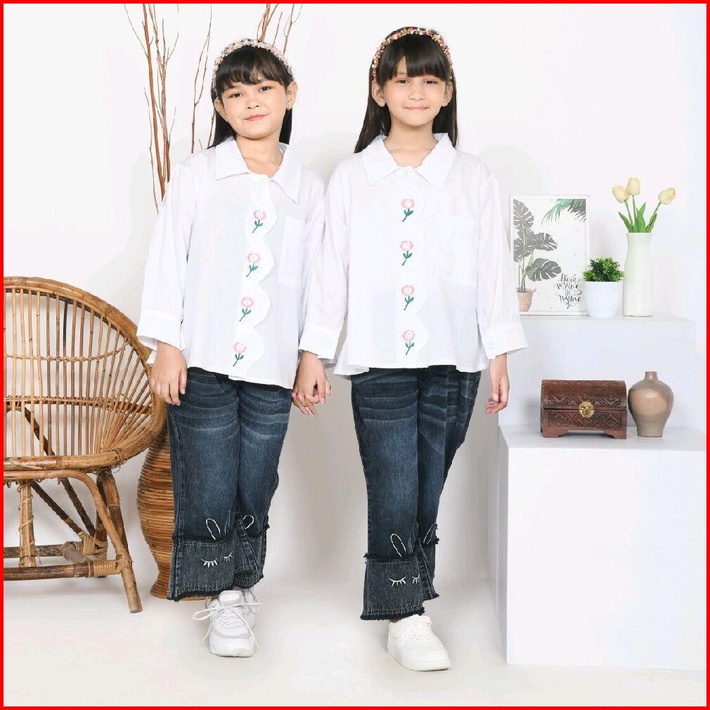 Sinarbarukids Setelan Anak Perempuan Keysha Atasan Katun Poplin Celana Jeans Bordir 3 - 12 Tahun