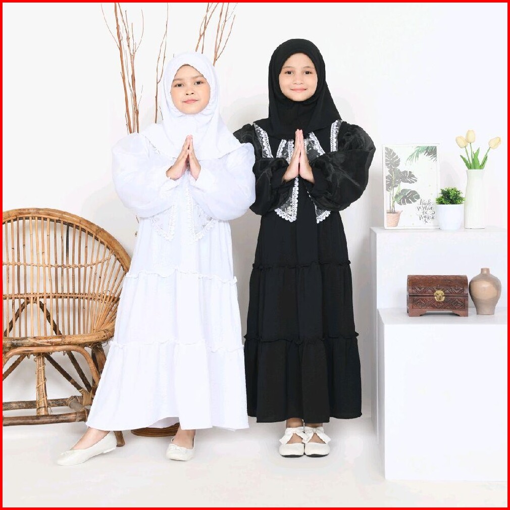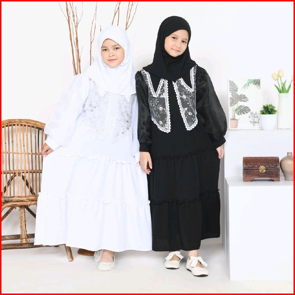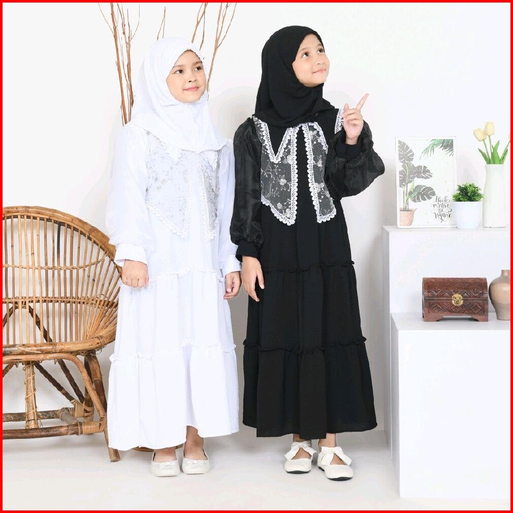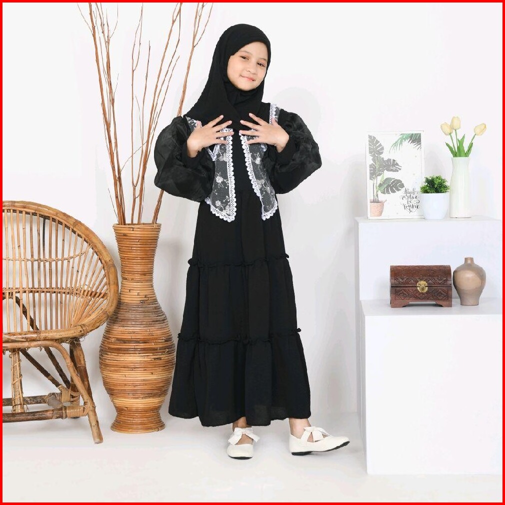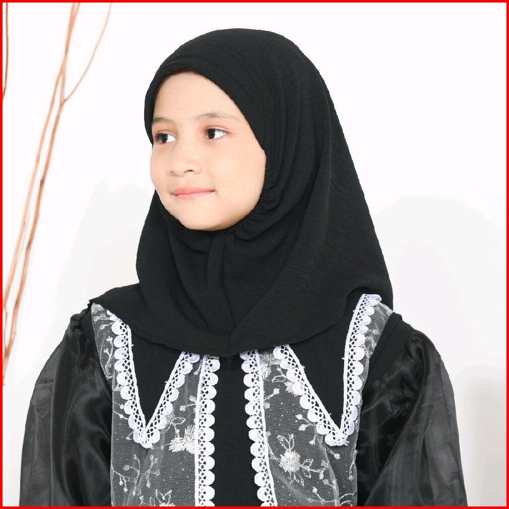 Sinarbarukids Gamis Anak Perempuan Syari Cringkle Airflow Gamila Free Jilbab Bergo 3 - 12 Tahun Muslim