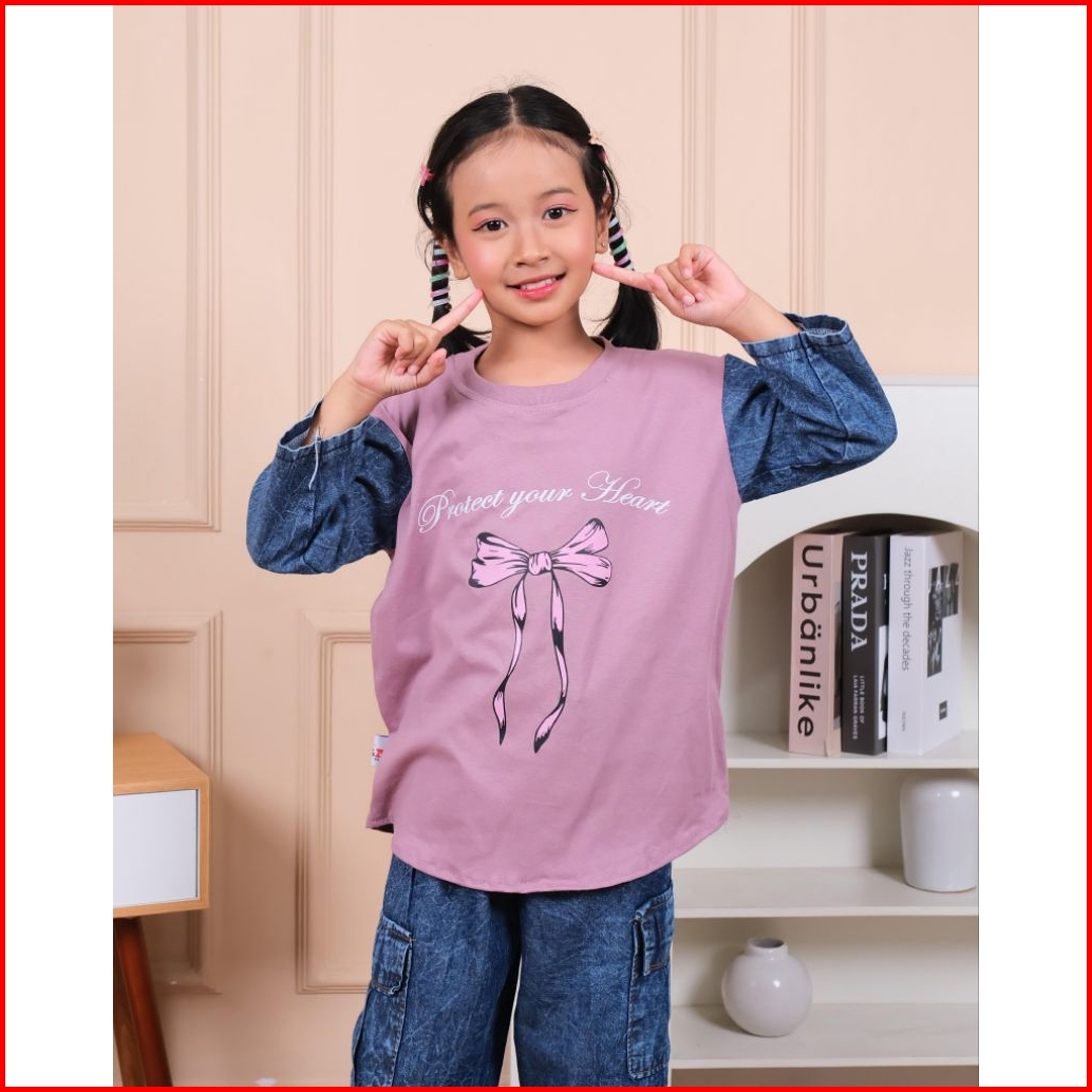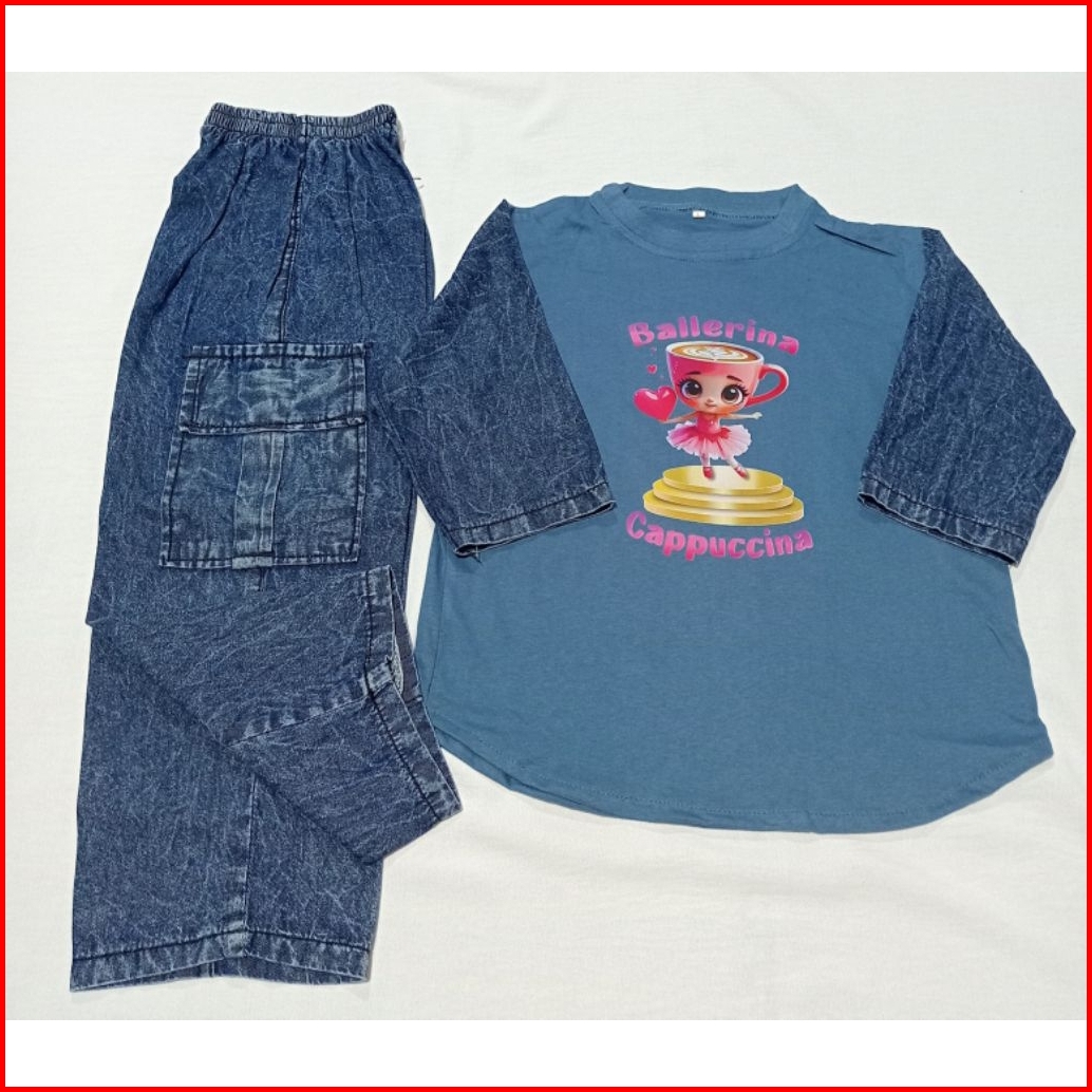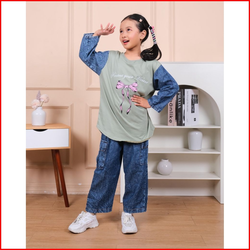 Gratis Ongkir Baju Anak Perempuan Baju Gambar Pita Setelan Celana Levis Cargo 3 Tahun - 14 Tahun