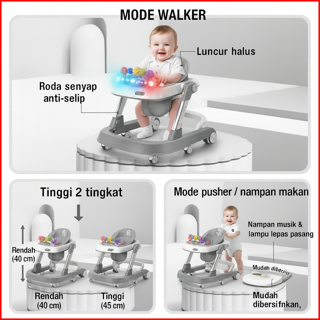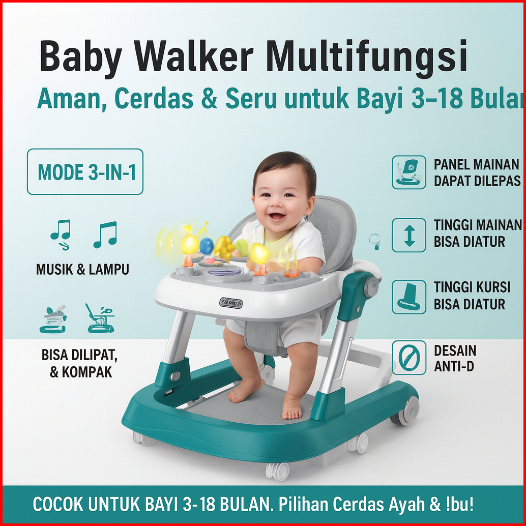 Beige Walker Bayi 2in1 Mobil Anak Alat Bantu Jalan Bayi Bisa Dilipat Portabel Usia 6-24 Bulan