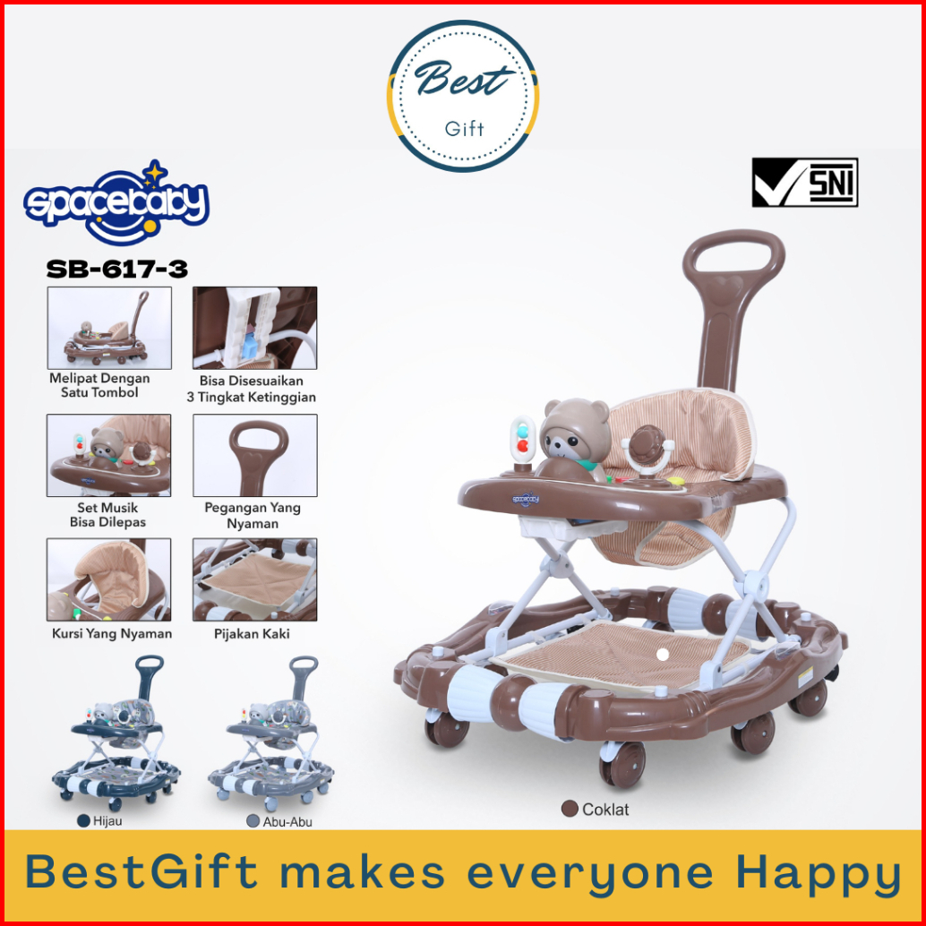 Spacebaby Sb-617-3 Baby Walker Bear Ada Lampu Dan Musik