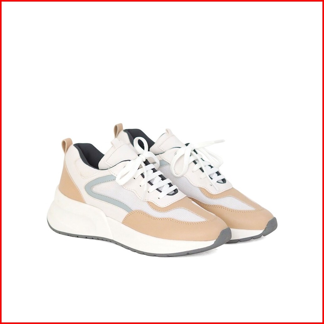 Polla Polly X Suga Beige - Sepatu Sneakers Sport Wanita 36-41 Model Korea Sneaker Low Cut