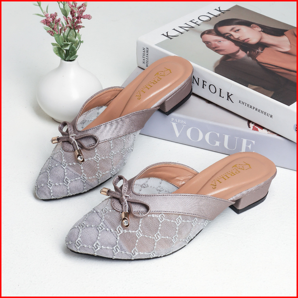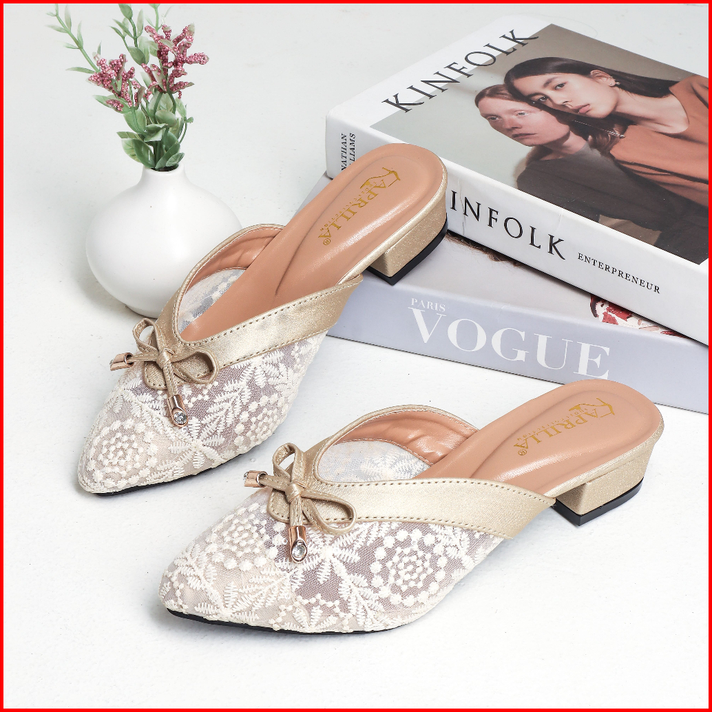 Sandal Bustong Brukat In-02 Aprilia Collection Sendal Brukat Wanita Terbaru Hak 3cm Samdal Hak Brukat Pesta Perempuan Re