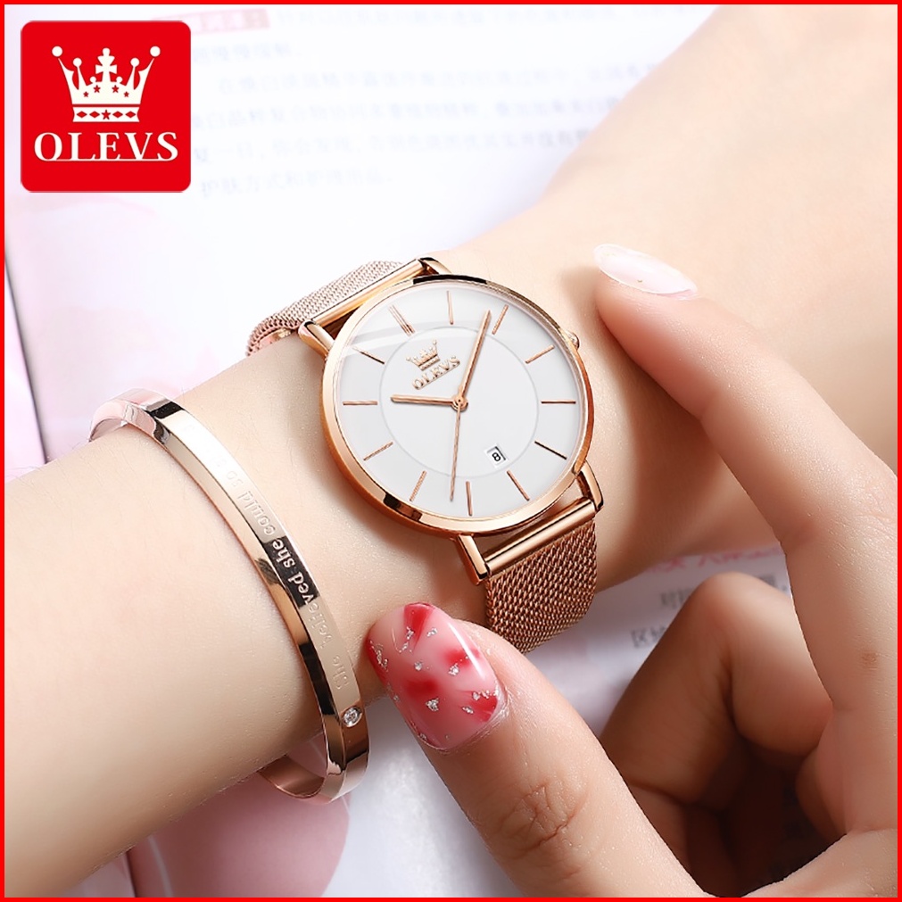Olevs Jam Tangan Wanita Anti Air Original Casual Asli Dengan Tanggal Ultra-thin Rose Jepang Quarz Women Watch 5869