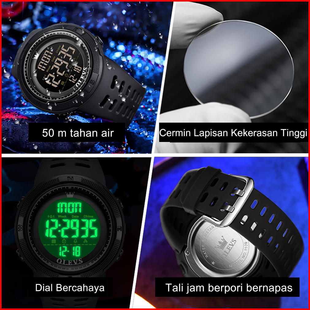 Olevs Jam Tangan Pria Anti Air Original Led Digital Tampilan Ganda Analog Multi Fungsi Jam Alarm Pengatur Waktu Men Watc