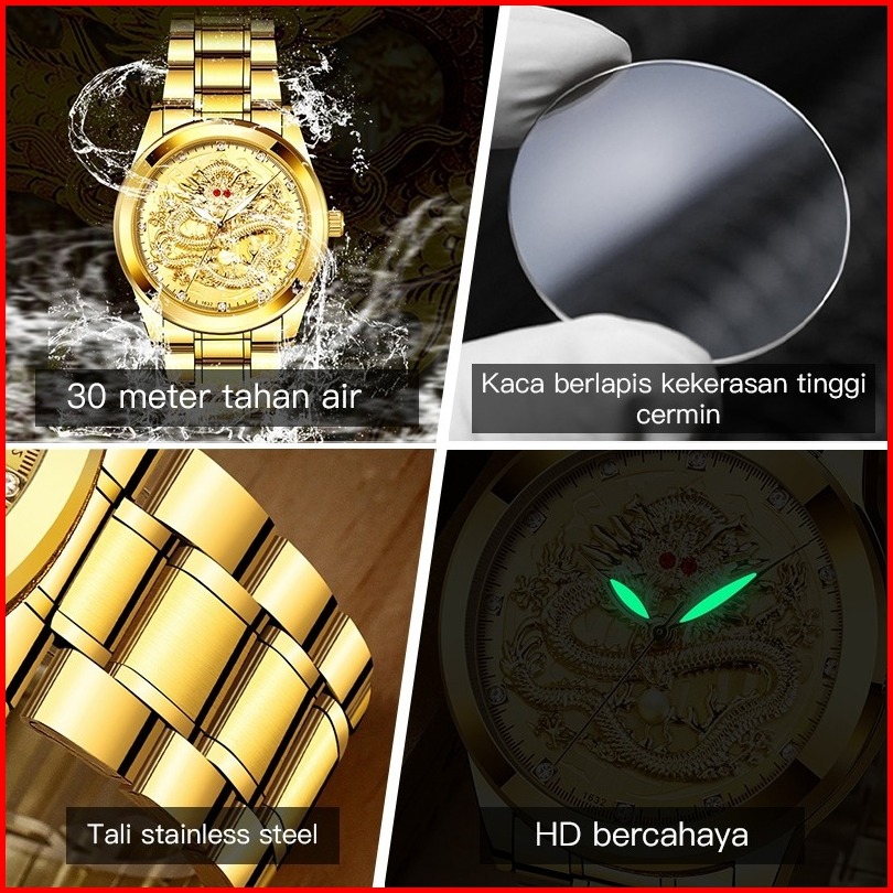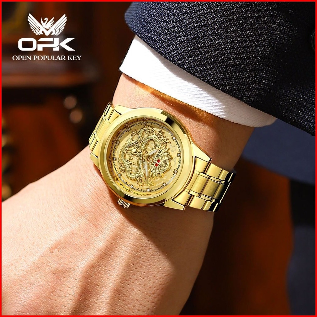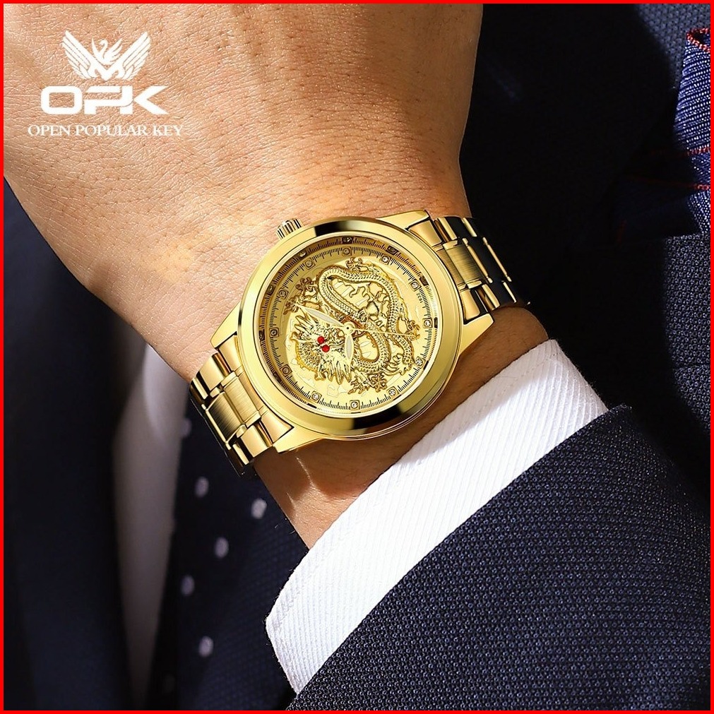 Opk Jam Tangan Pria Anti Air Original Naga Cina Anti Karat Luxury Bercahaya Quartz Watch Men 8111
