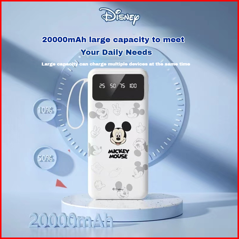 Disney S New Power Bank 20000 Mah 20w High Capacity With Cable Portable Cartoon Power Bank