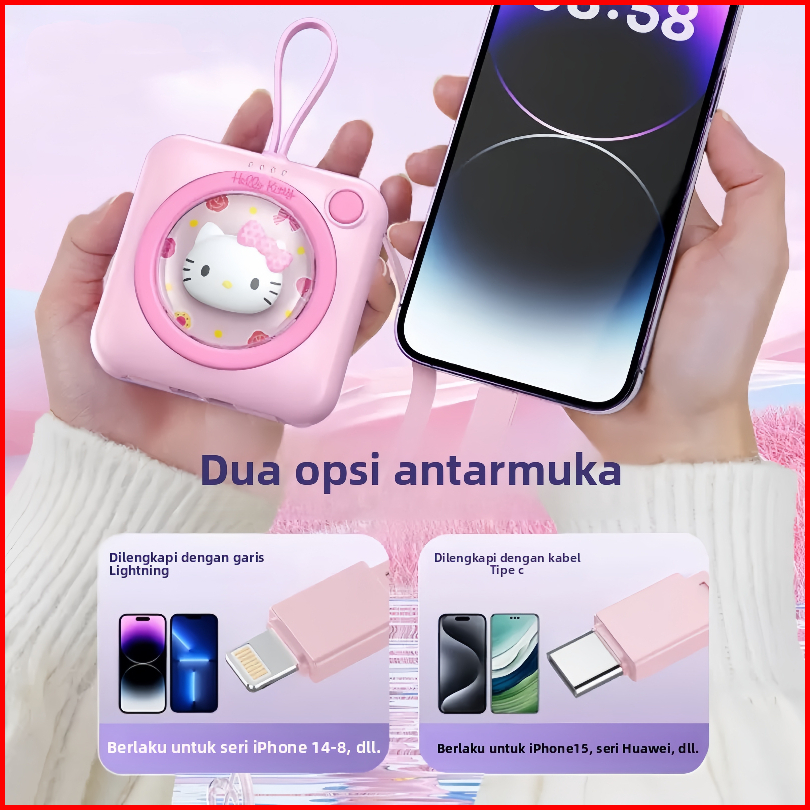 Rccor Powerbank Imut 20.000mah Fast Charge - Hello Kitty Kuromi Edition Bawa Kabel Dual Type-c Iphone