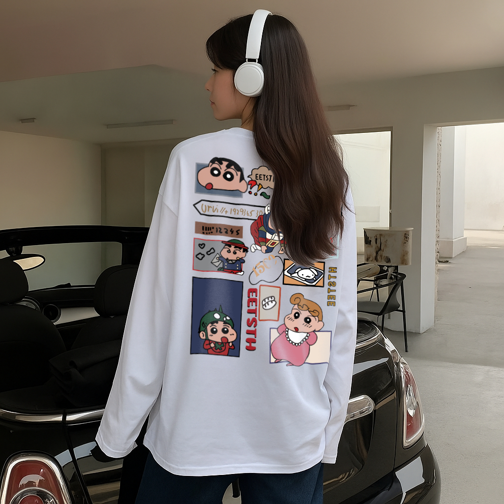 Tshirt Kaos Lengan Panjang Gambar Kartun Shinchan Cocok Untuk Daily 100 PERSEN Cotton Murah Gratis Ongkir Garansi Pengiriman
