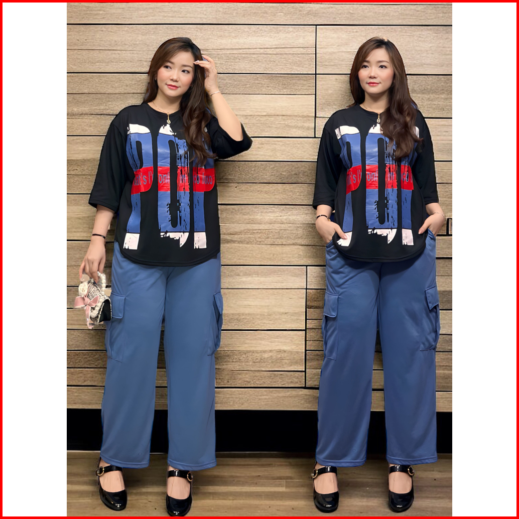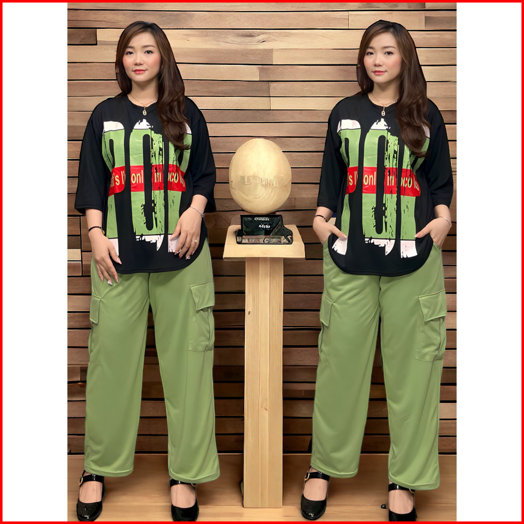 Setelan Cargo Viral Ld120 Stelan Atasan Oversize Celana Cargo Sr2217