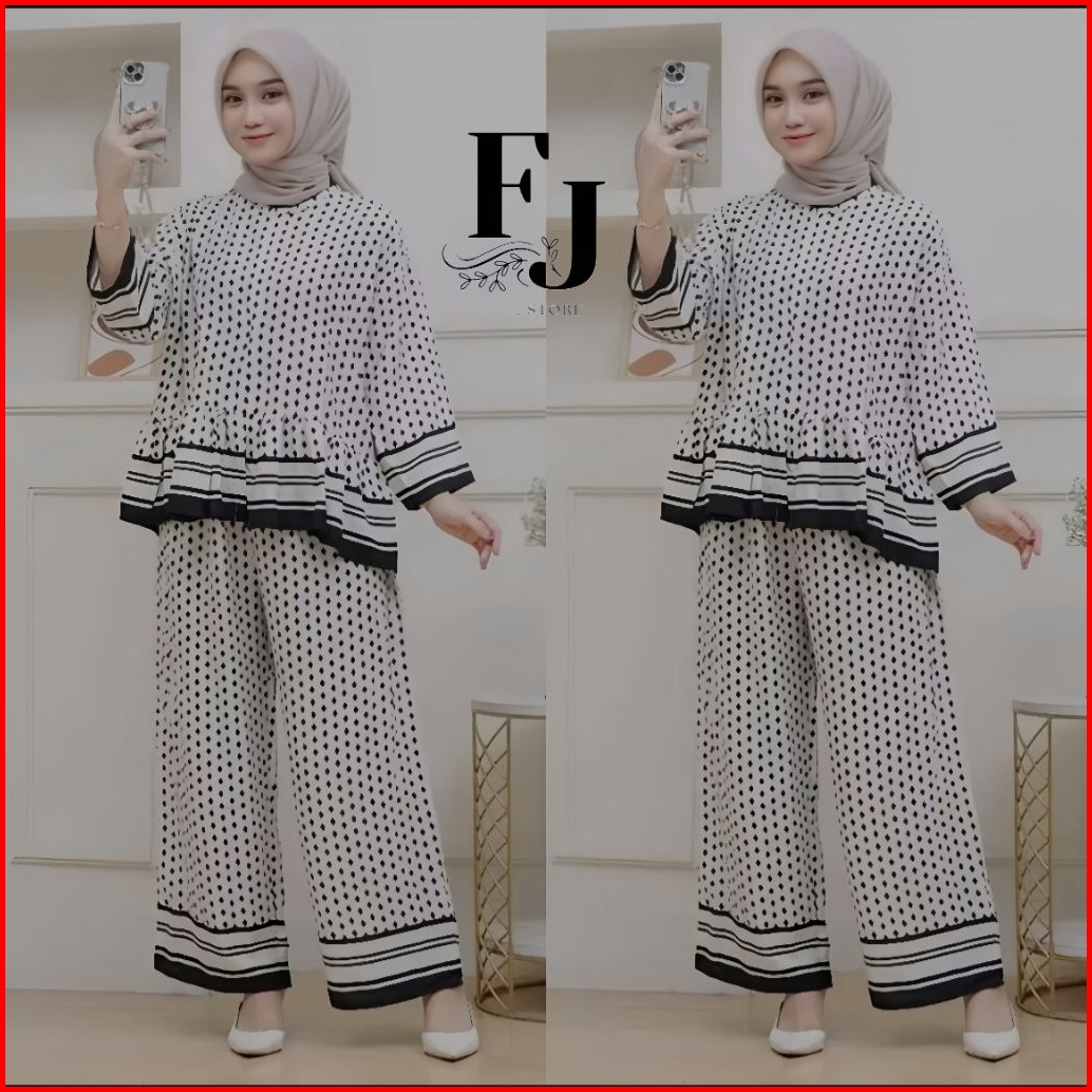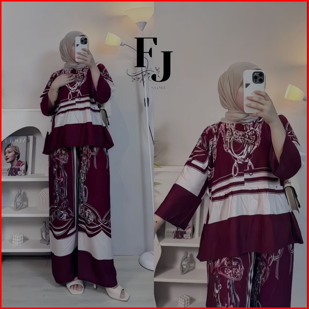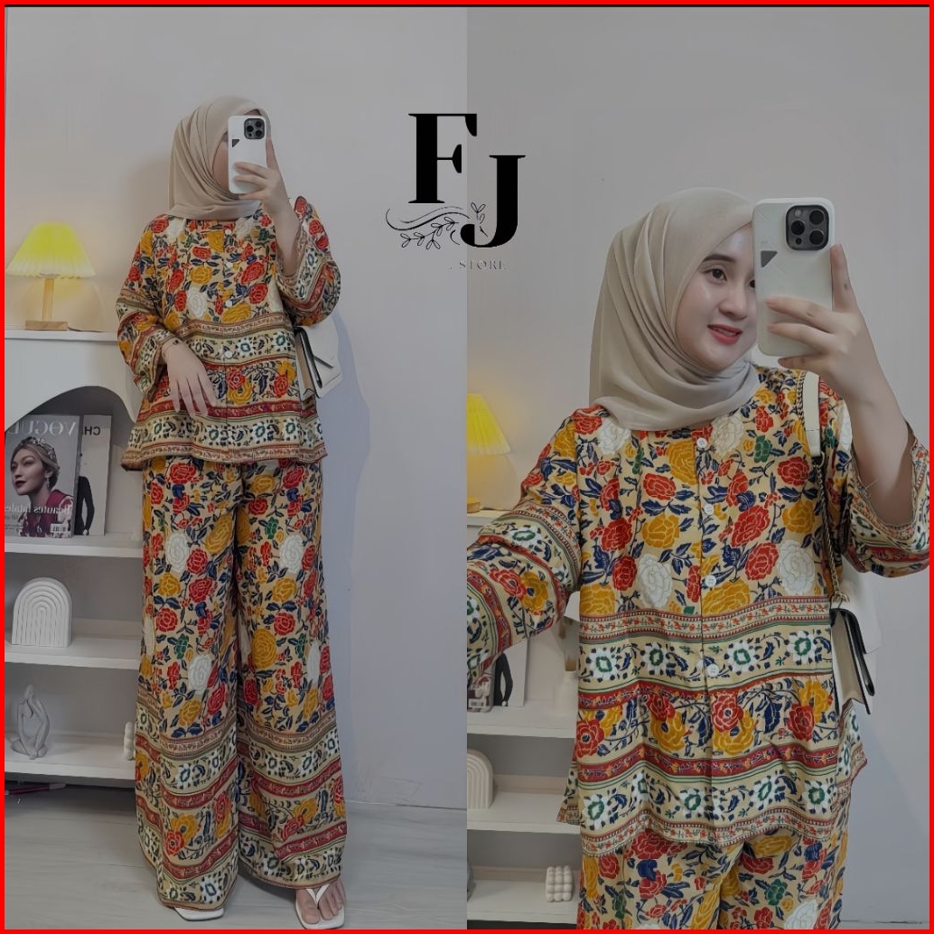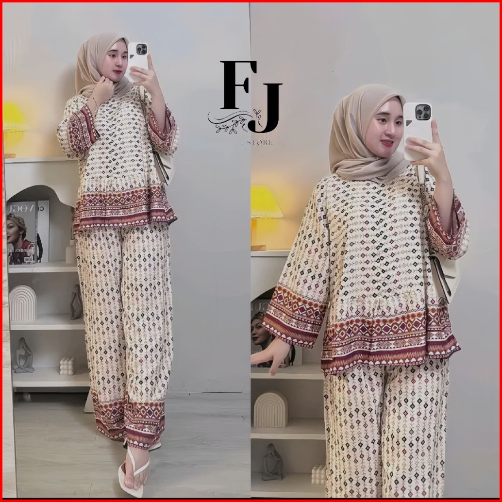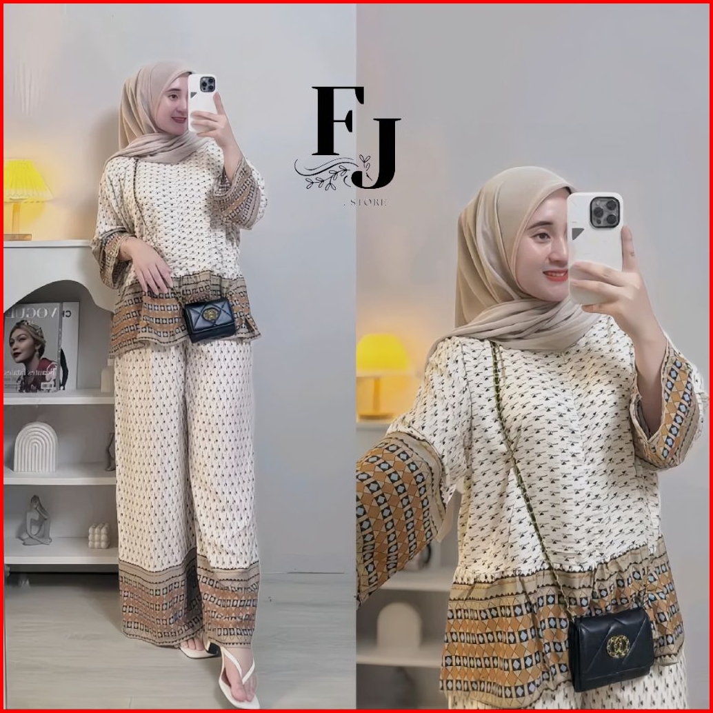One Set Wanita Terbaru -setelan Rayon Premium Terbaru Virall Busui Adem Atasan Celana Kulot Panjang Motif