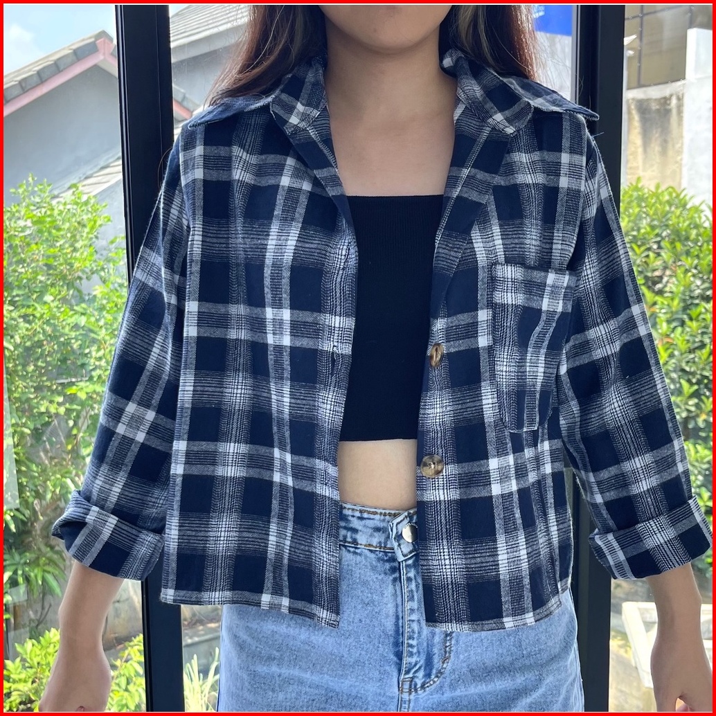 Tartan Blazer Kemeja Luaran Kotak Basic Premium Kallyoutfit