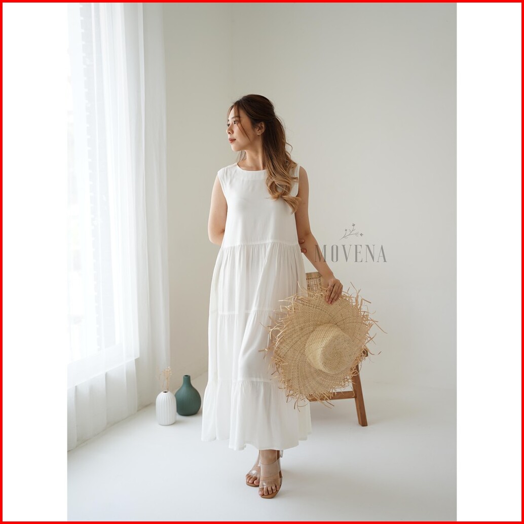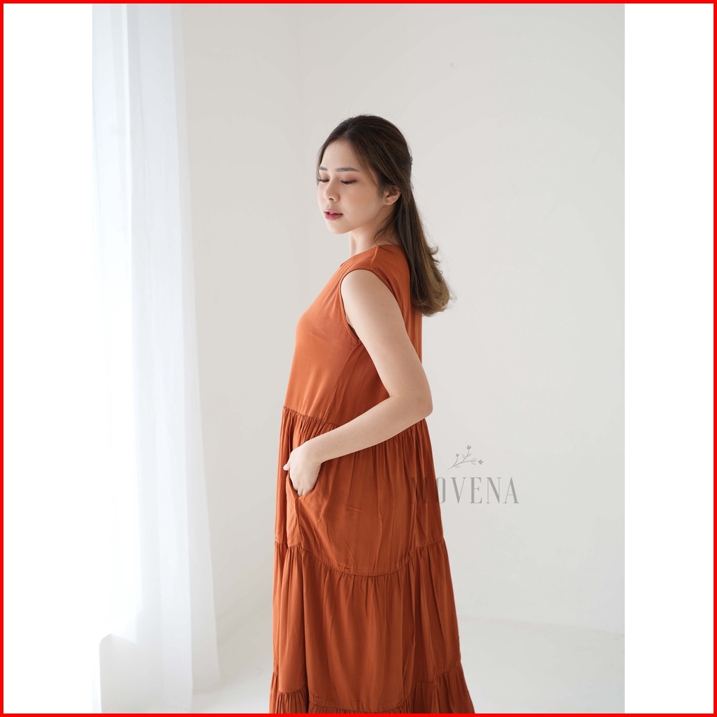 Dress Panjang Wanita Heidy Flowy Midi Dress Tanpa Lengan Sleeveless Rayon Premium
