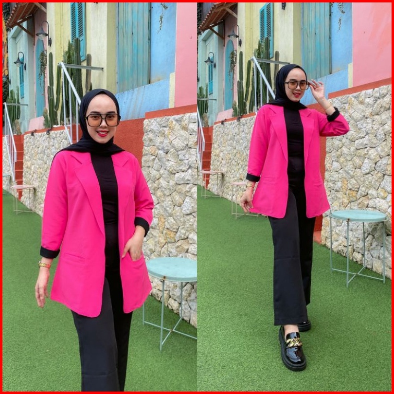 Blazer Cardigan Outer Fahira Kotak-kotak Wol Elastis