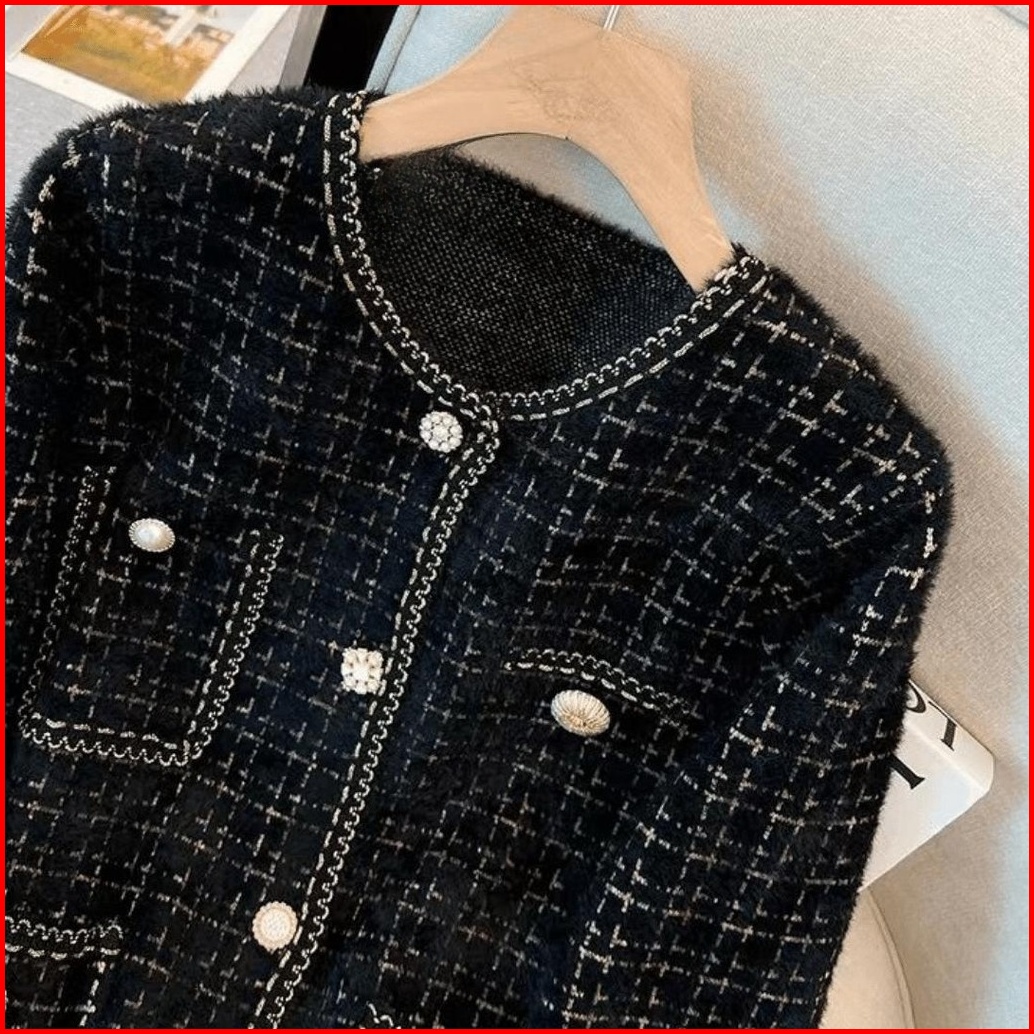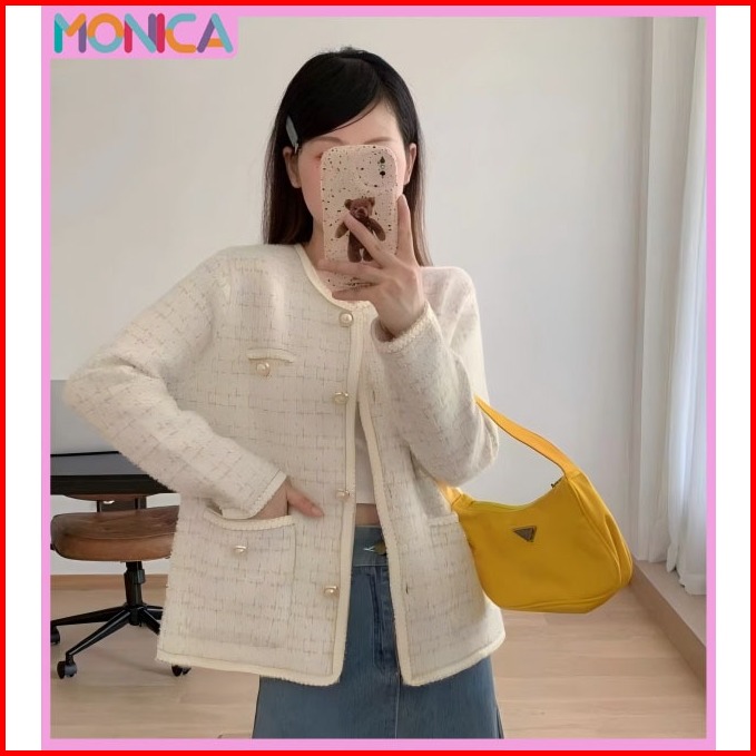 Monica Cardigan Blazer Bulu Halus Elegant Fuzzy Tebal Mutiara Sweater Lis Renda