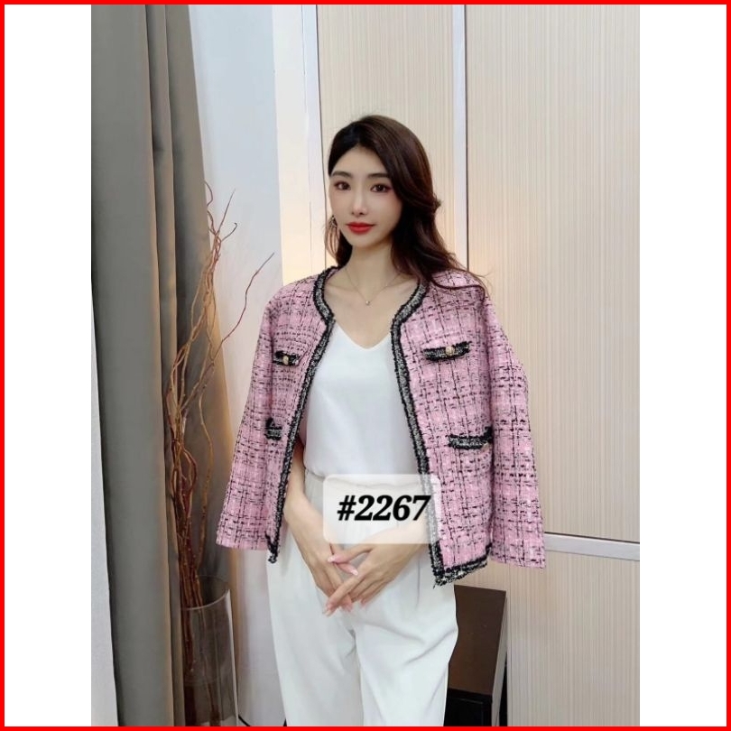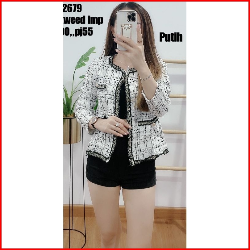 Realpic Bsic Blazer Wanita Tweed Import Premium Tangan Panjang