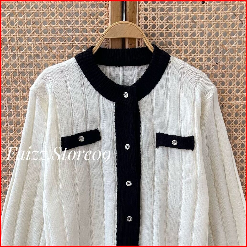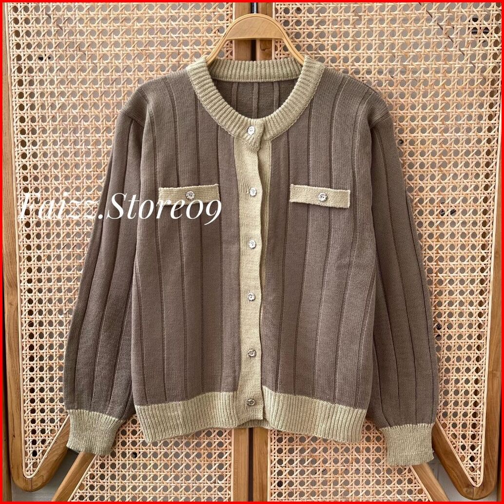 Amisha Cardigan Rajut Stripe Kancing Salur Wanita Lengan Panjang