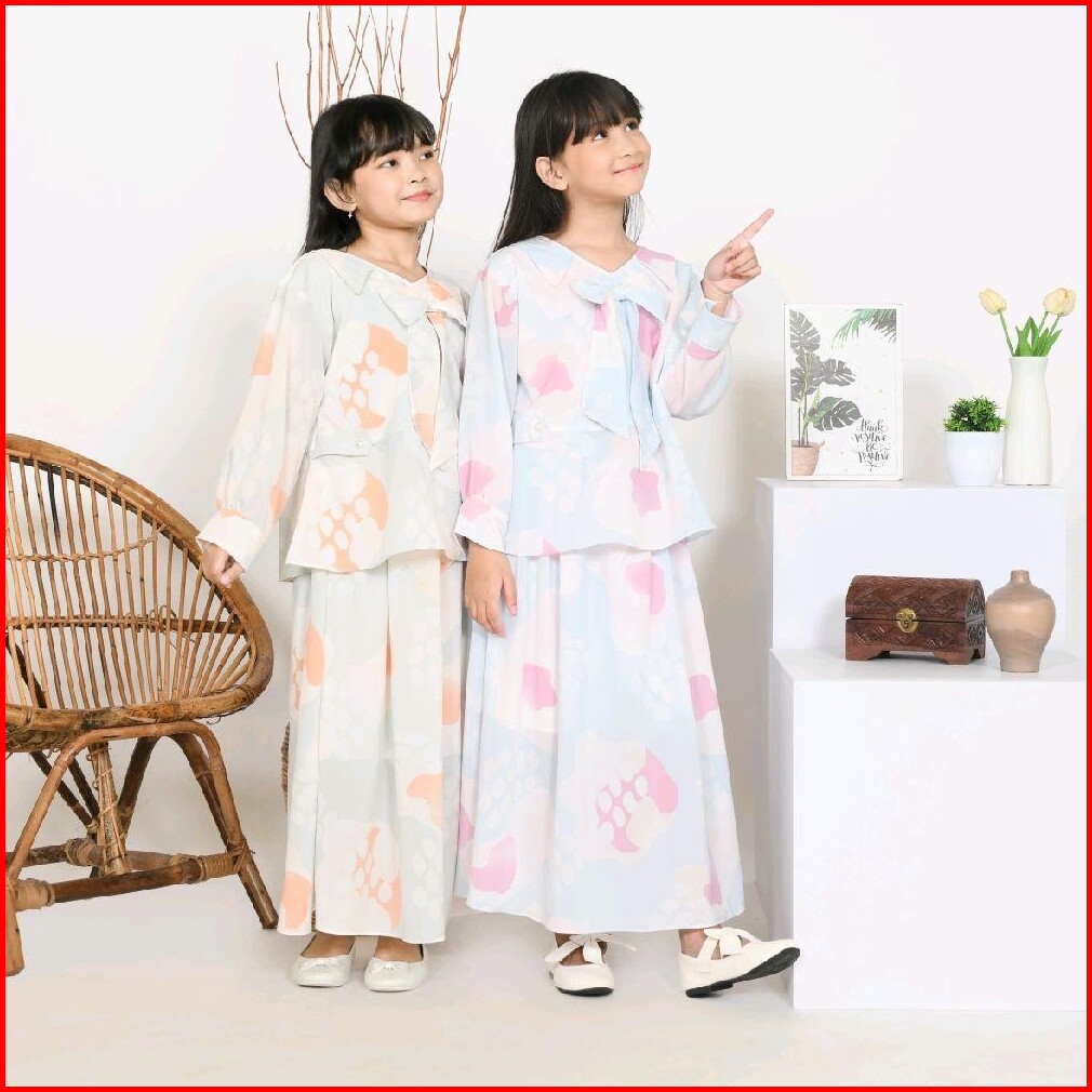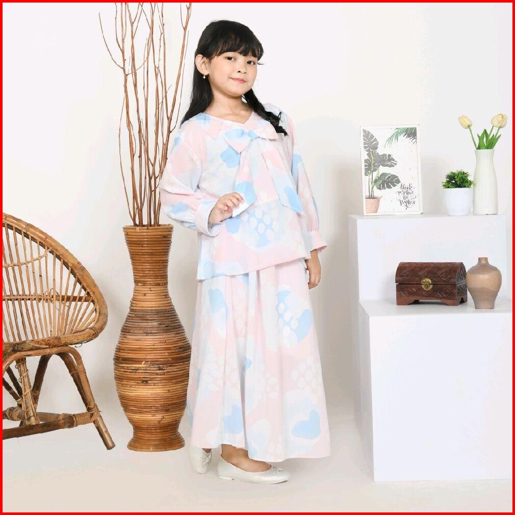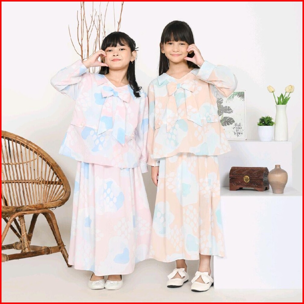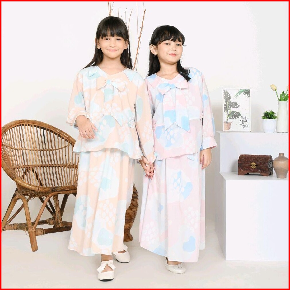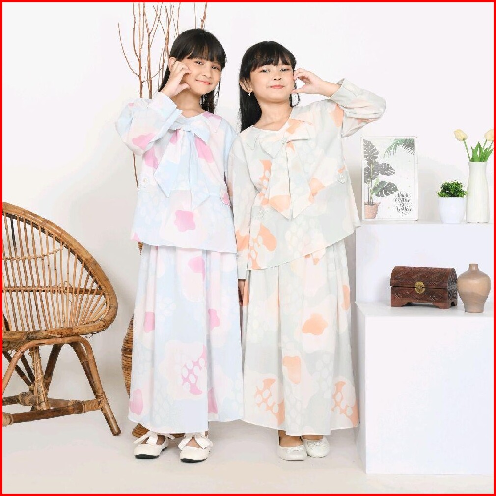 Sinarbarukids One Set Anak Perempuan Tamara Ceruty Motif Aksen Pita Lengan Panjang 3 - 12 Tahun