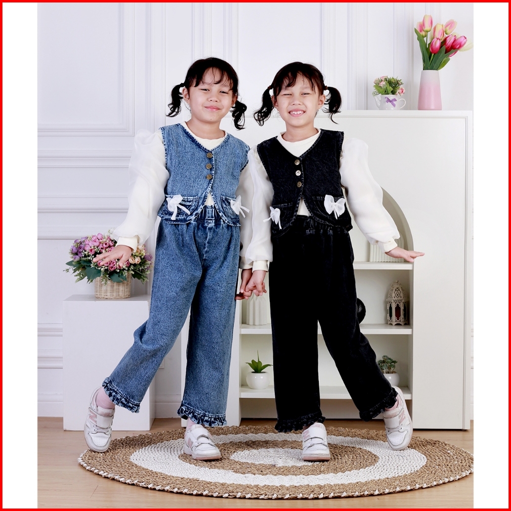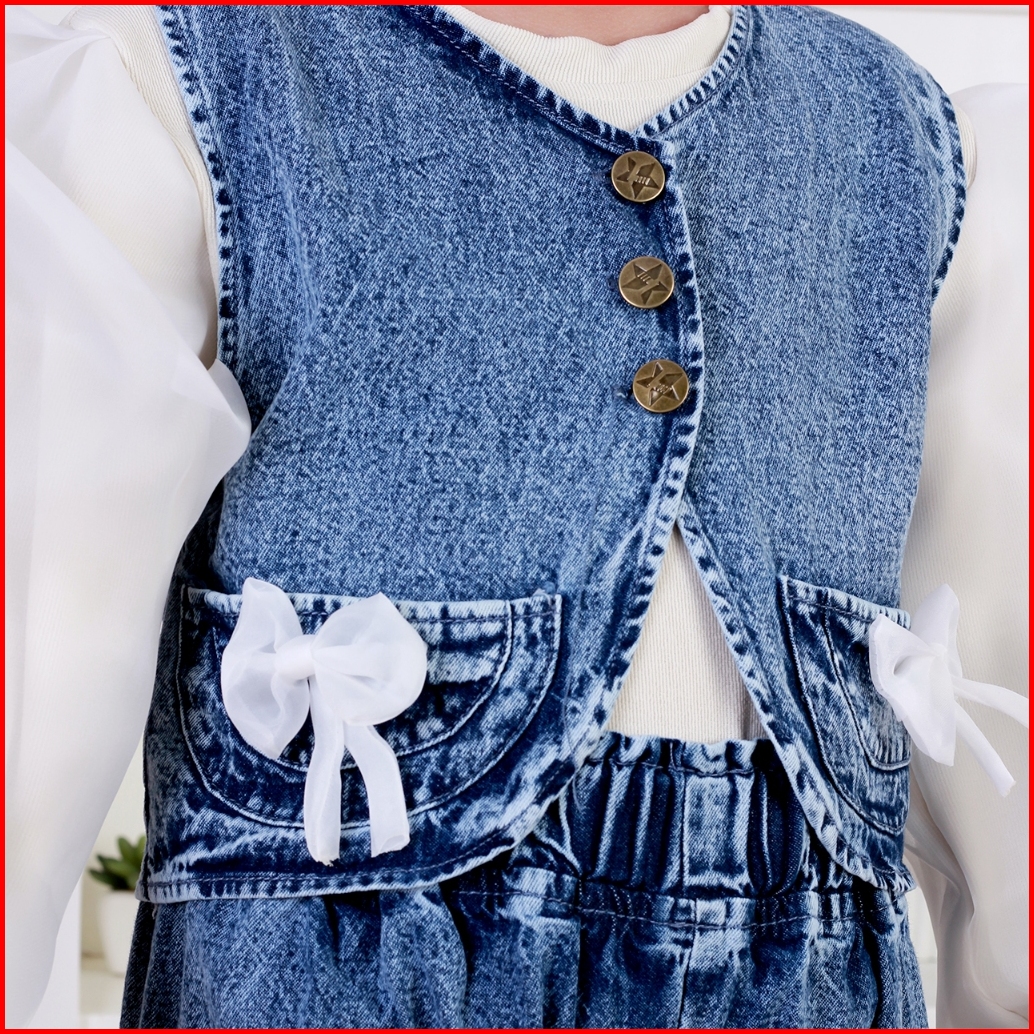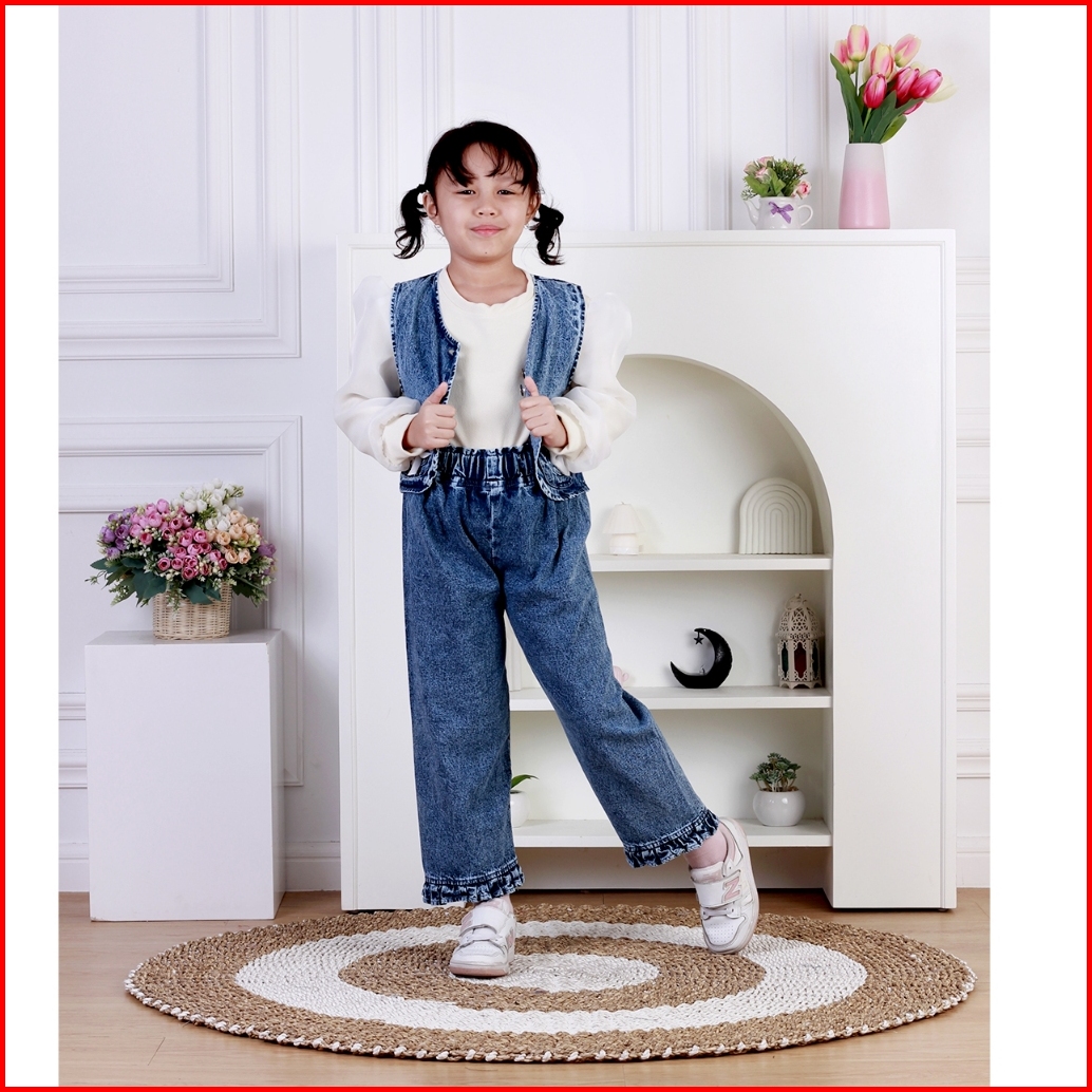 Dungdungkids Setelan Anak Jeans Hestia Rompi Pita Knitt Lengan Organza 3 - 12 Tahun