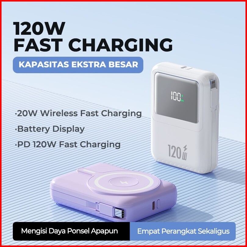Skcbo 120w Wireless Super Fast Charging Mini Powerbank 20000 Mah 4 Usb Cable Fast Charging Pengisi Daya Cepat Led Displa