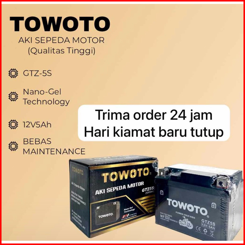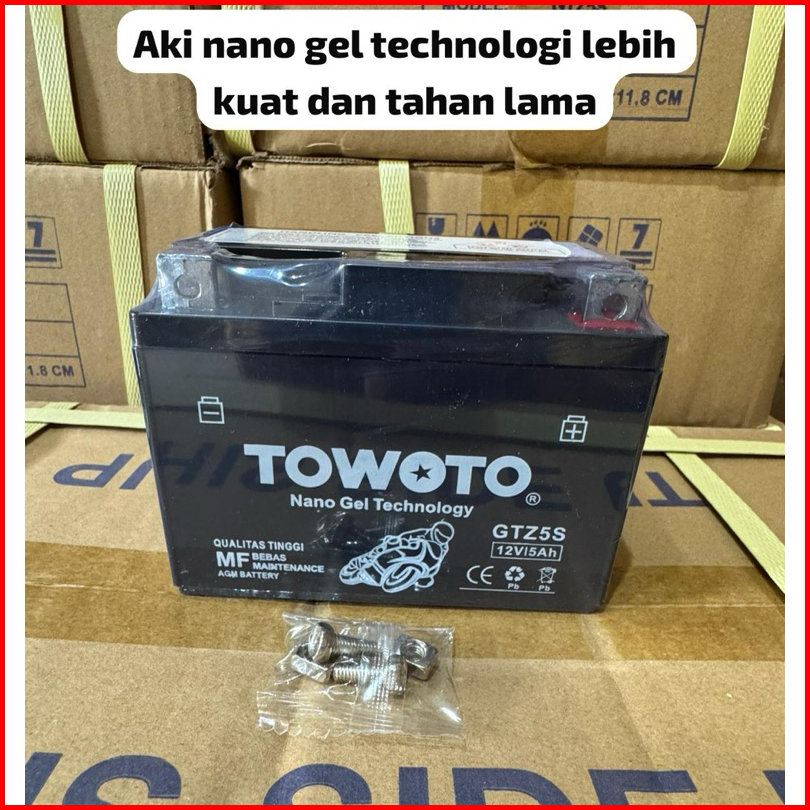 Aki Battery Motor Towoto Full Kering Gtz5s Beat Fi Beat Pop Supra125 Supra125fi Revo Absolut Spacy Scoopy Mio J Mio M3 K