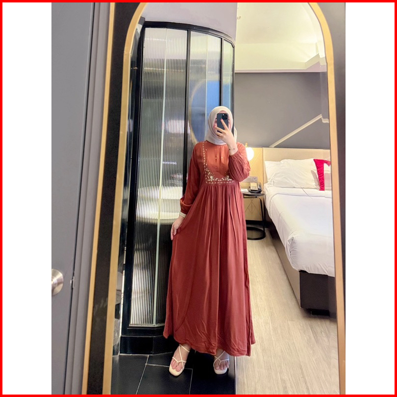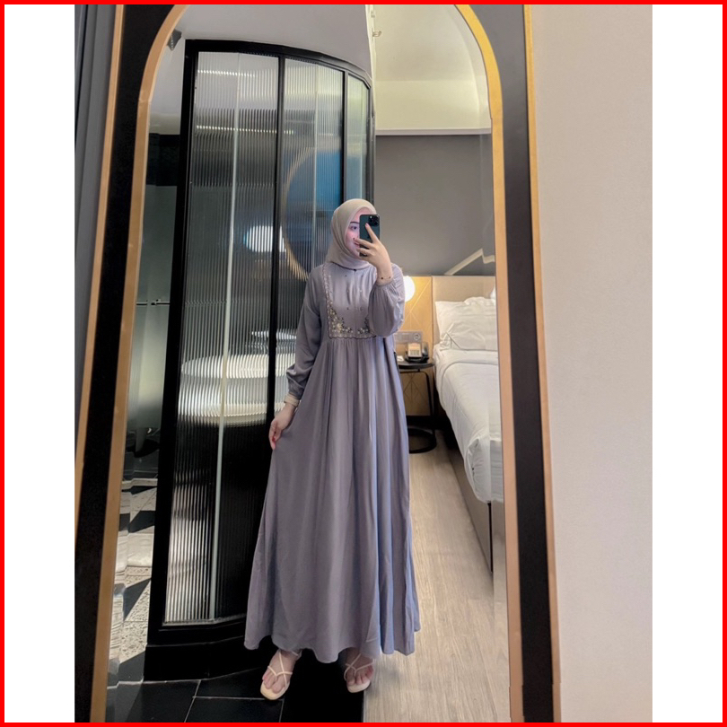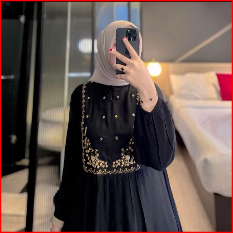 Mecca Dres Gamis Lebaran Borrdir Rayon Twill Tali Samping Premium Gamis Hari Raya Abaya Premium