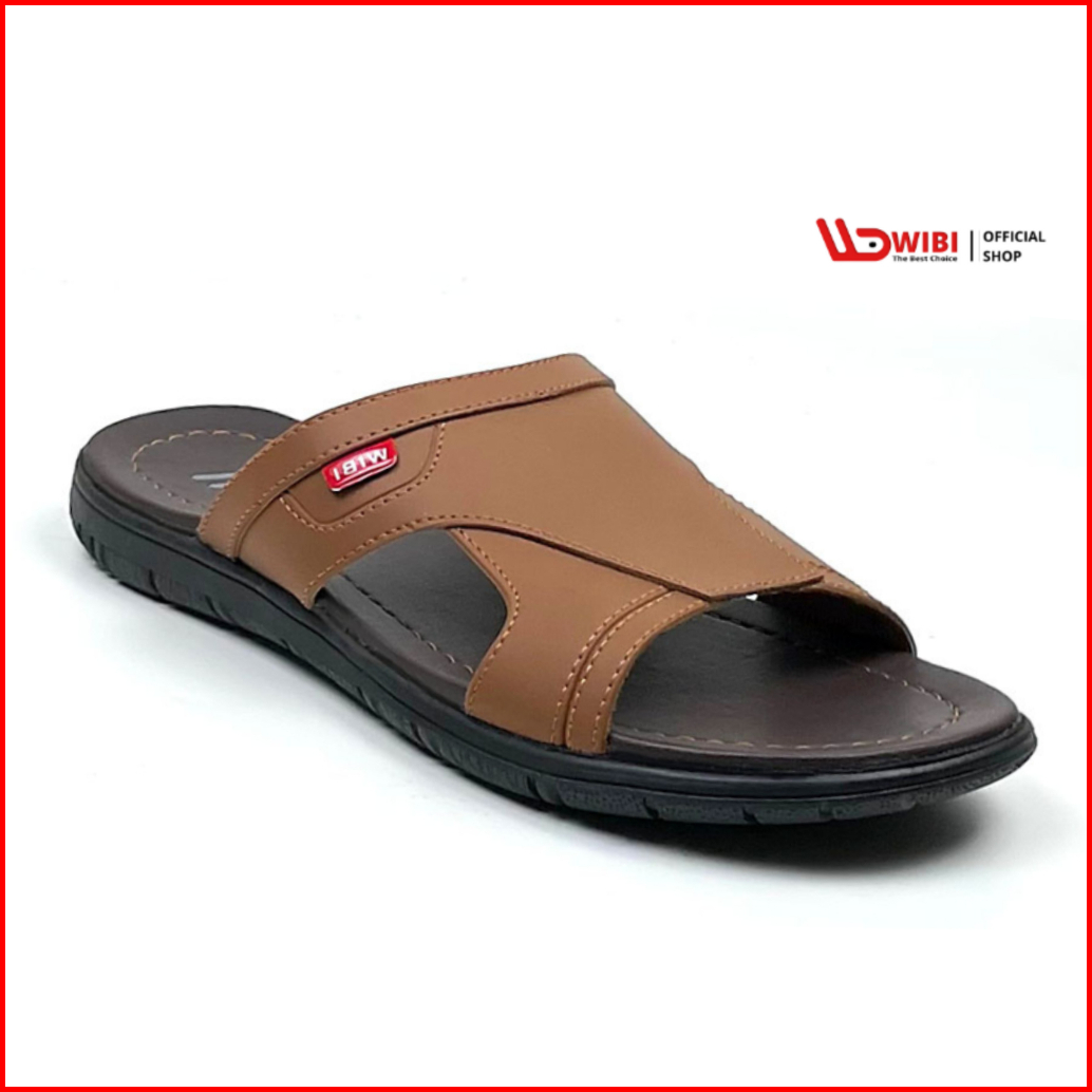 Wibi Smooth Logo S12-01 Sandal Kulit Pria Dewasa Slop Cokelat Tua 39 Sd 43