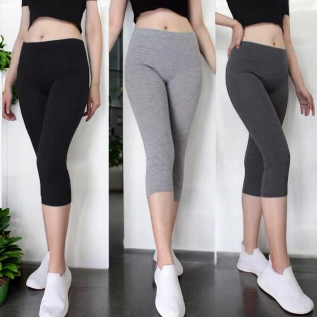 Celana Lejing Selutut 7 / 8 Pendek Olahraga Wanita Polos Standar & Jumbo Spandek / Celana Pendek Legging Murah Gratis On